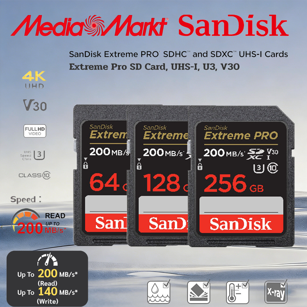 Sandisk SDSDXXO 32GB Extreme Pro SD Card Extreme PRO SDHC/SDXC UHS-I Card (128GB / 256GB / 512GB)