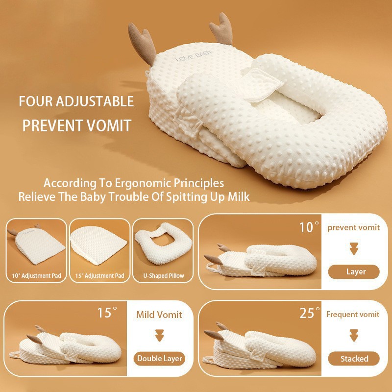 Breathable Baby Anti-spill Milk Pillow Set, Newborn Baby Feeding Mattresses Anti Vomiting Ramp Pad