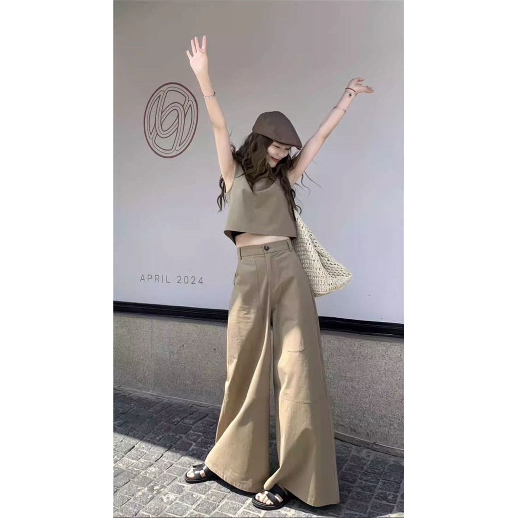 Influencer High-End Summer Old Money Style Fashion Suit Simple Sleeveless Vest Casual Wide-Leg Pants Fashionable Two-Piece Suit Summer top pants for women outfit set korean set outfit