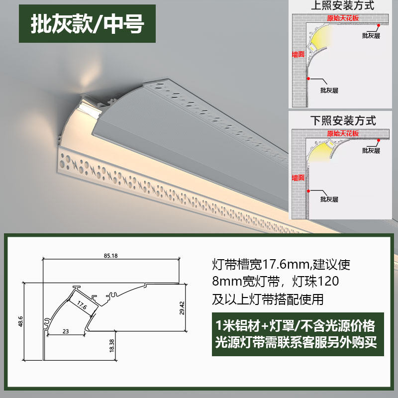 Aluminum Alloy Light Slot Arc-Shaped Aluminum Slot Light LED Line Aluminum Slot Suspended Ceiling Light Slot Reflective Slot Light with Line Light Frameless Linear Wall Washing Light Yin Corner Yang Corner Line Light Surf