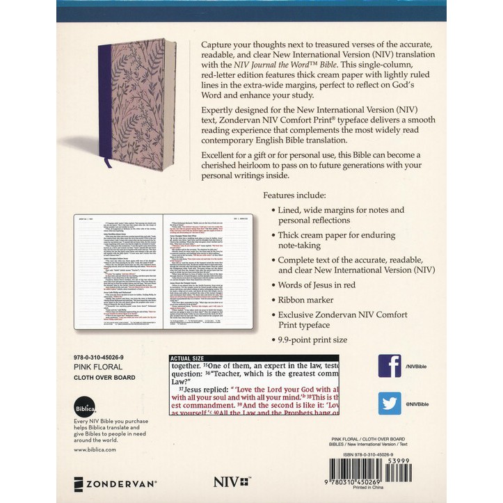 NIV Comfort Print Journal the Word Bible, Cloth over Board, Pink Floral