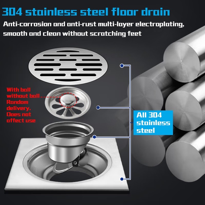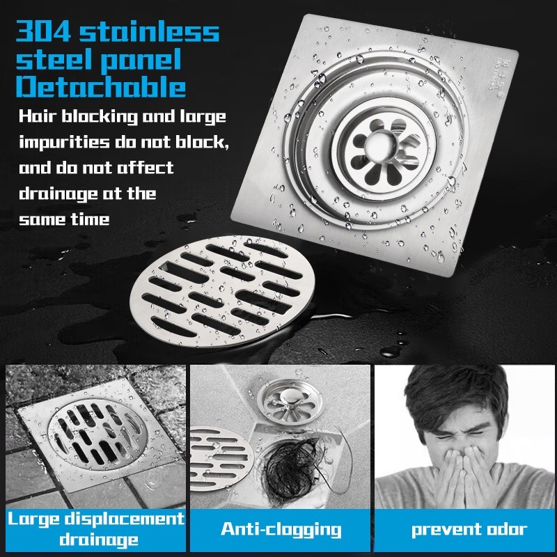 304 Stainless Steel Floor Drain Shower Drainer Anti Odor Floor Drain Cover