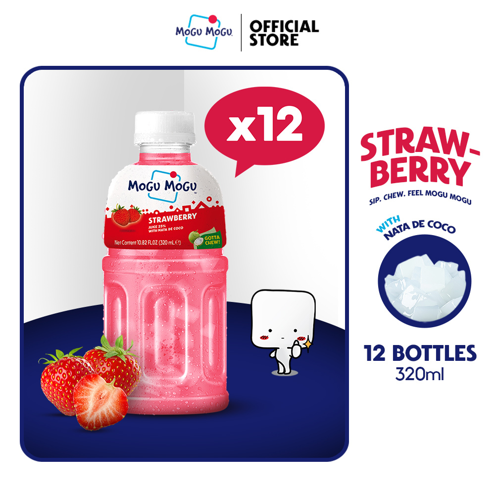 Mogu Mogu Strawberry Nata de Coco Juice Drink 320ml x 12 bottles