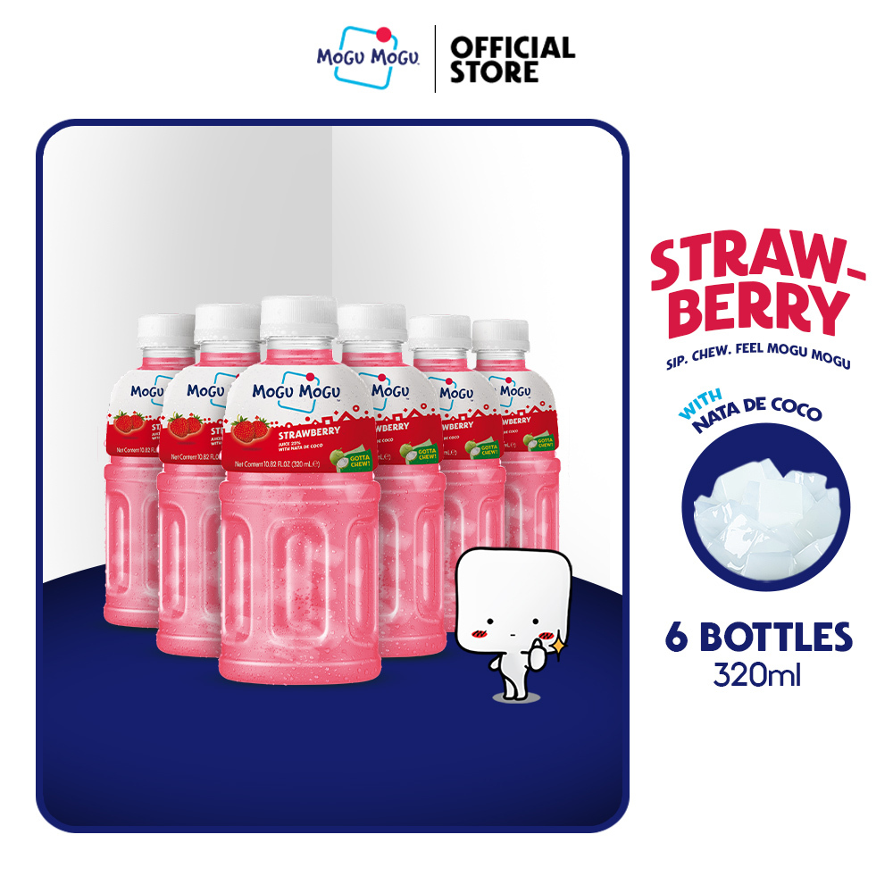 Mogu Mogu Strawberry Nata de Coco Juice Drink 320ml x 6 bottles