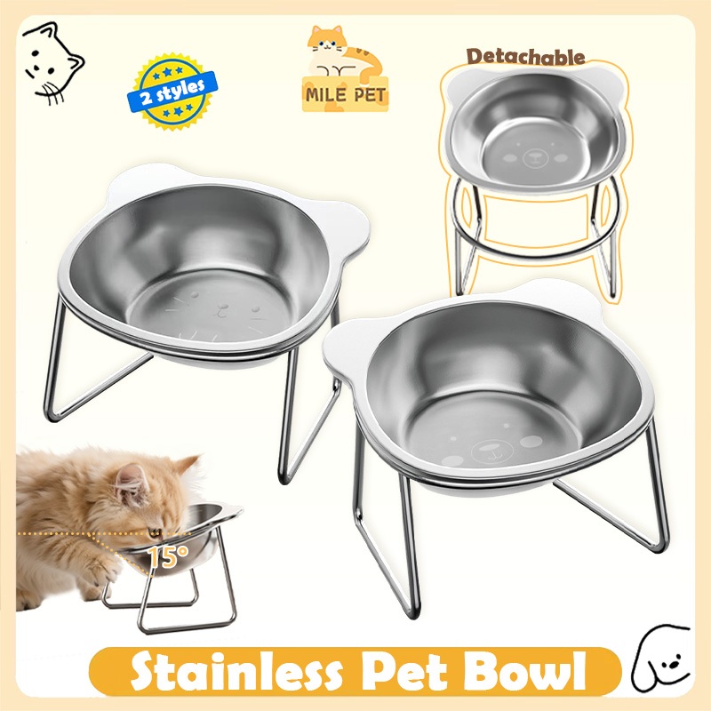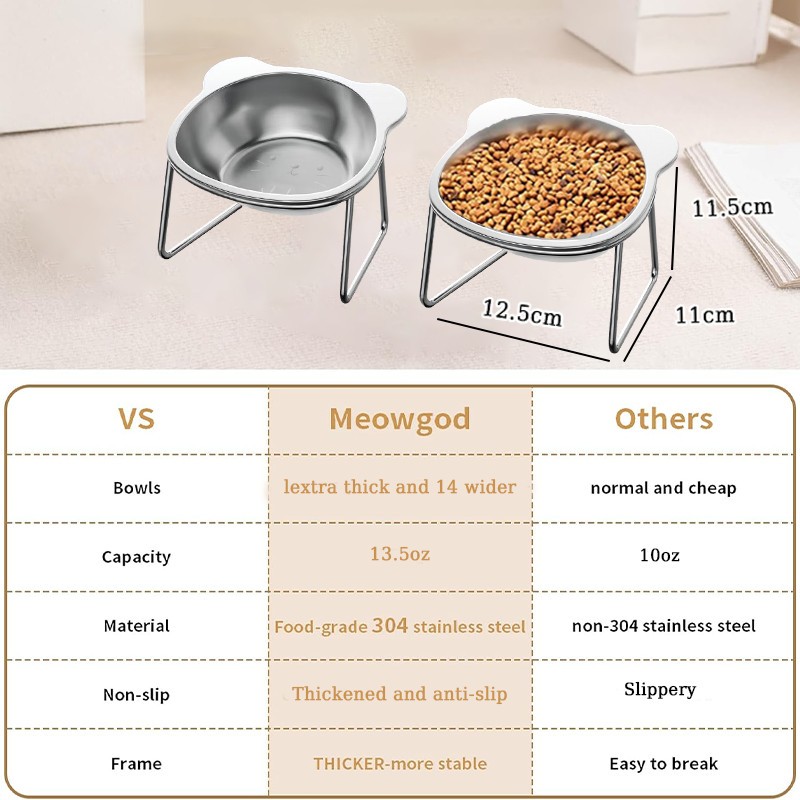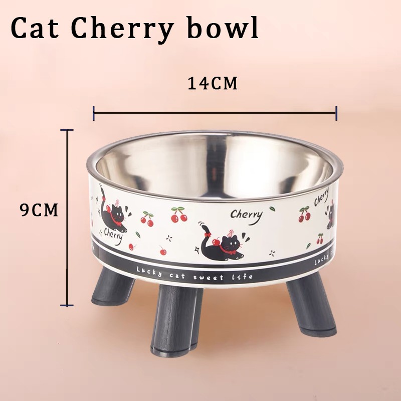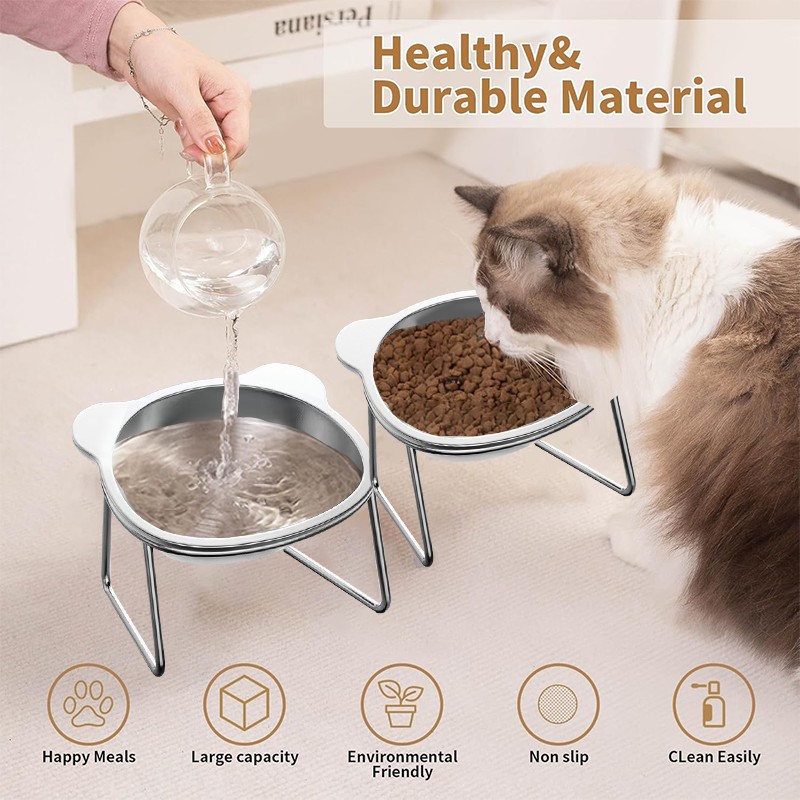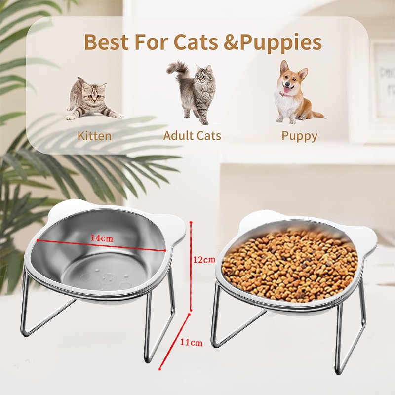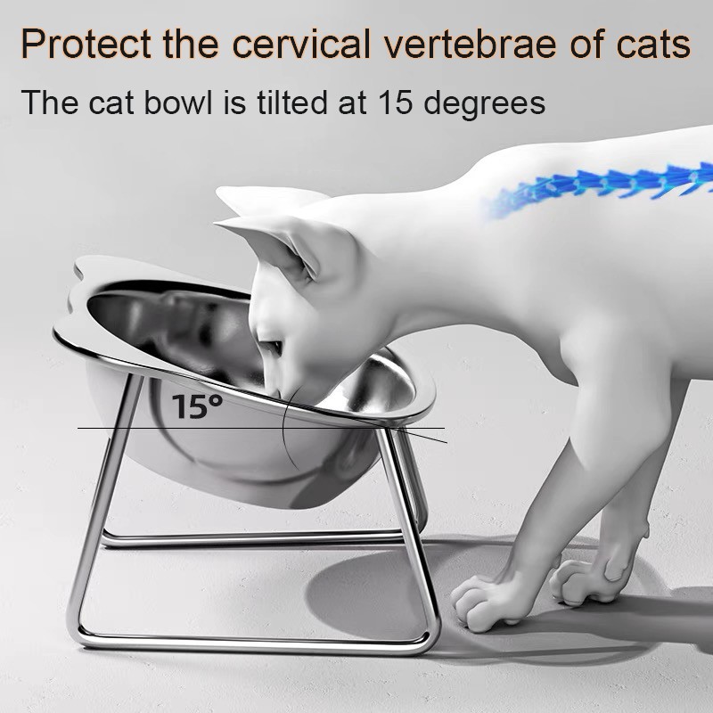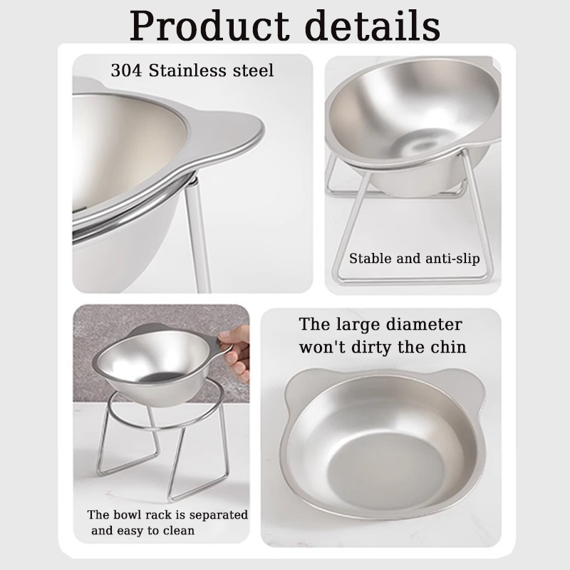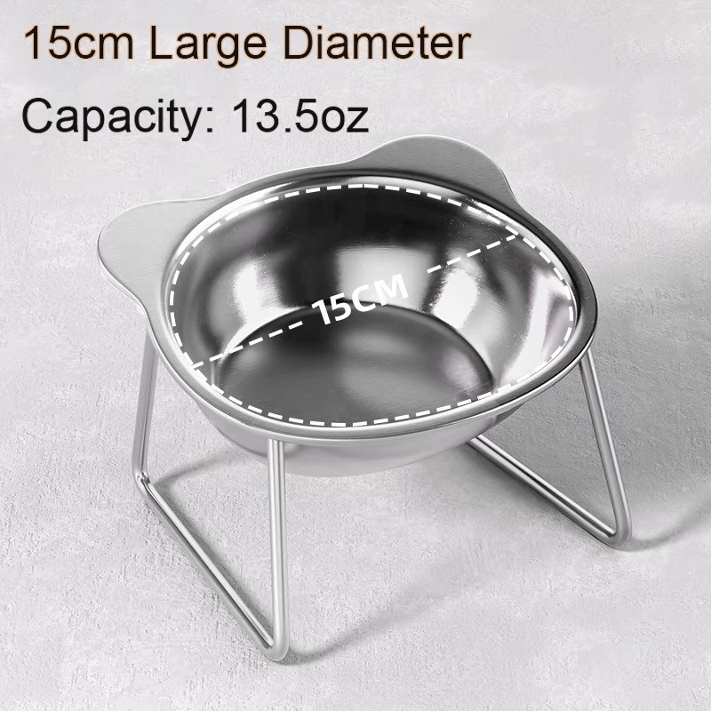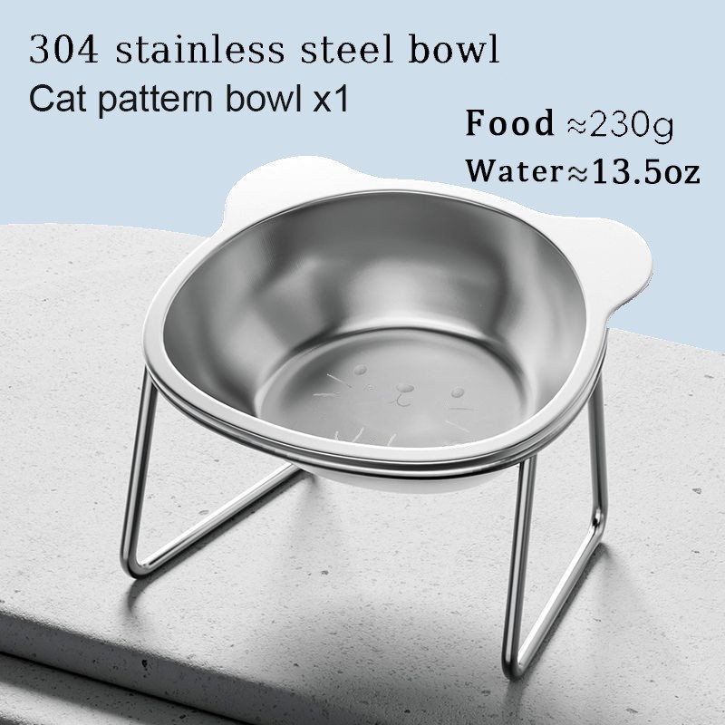 Elevated Stainless Pet Food Bowl Neck Protecting Cat Bowl Dog Bowl with Metal Stand Anti Rollover