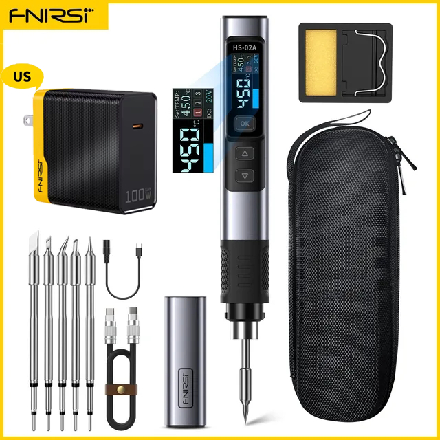 Fnirsi HS-02 Adjustable Temperature Soldering Iron DC 20V 100-450℃Solder Rework Station PD 100W Portable Repair Tool 18X2CM