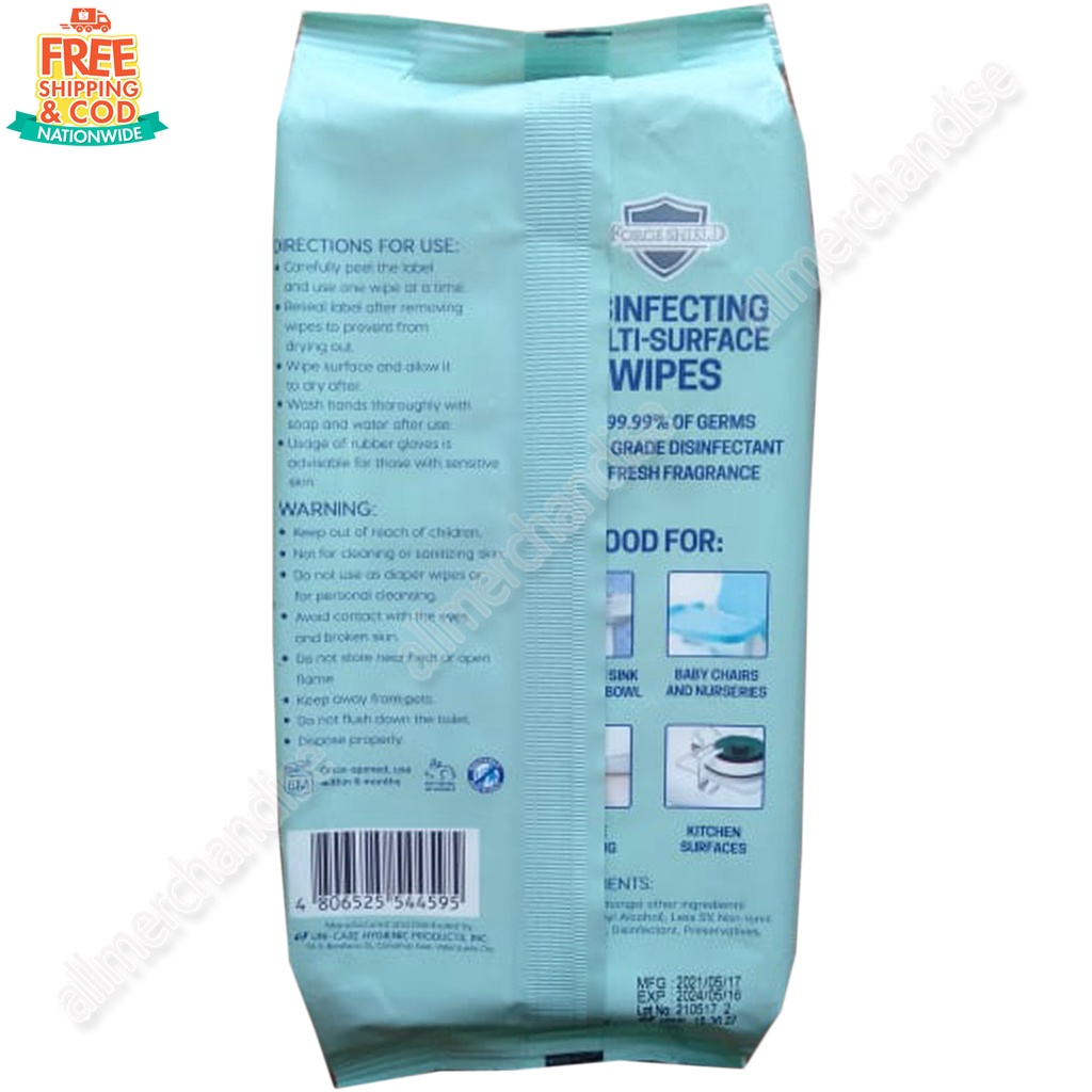 COD Force Shield Disinfecting Multi-Surface Wipes Fresh Scent 50 Sheets