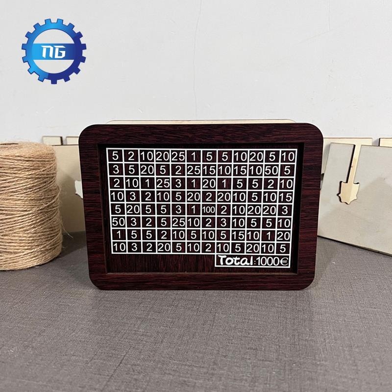 [quietnight.ph] Money Box Wooden Money Box, with Savings Goal and Number Box Wooden Piggy Bank.