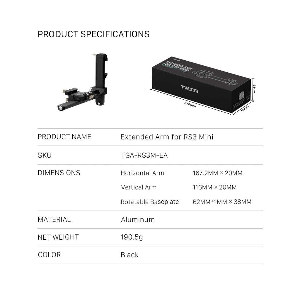 TILTA Extended Arm for RS3 Mini | Custom Designed | Lower Center of Gravity | ROTATABLE BASEPLATE | Extended ARM | Lightweight & Durable |TGA-RS3M-EA