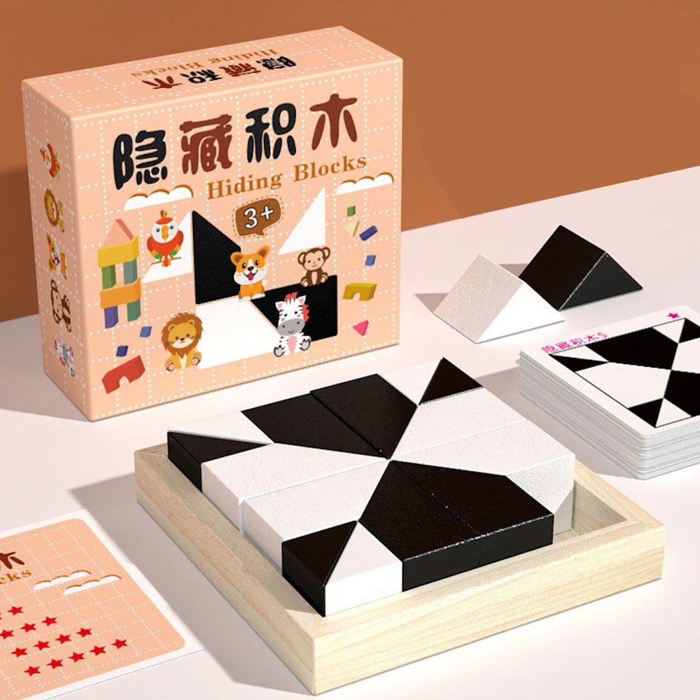Wooden Hiding Blocks Geometric Shape Puzzle Kids Logical Thinking Educational Toys Updated