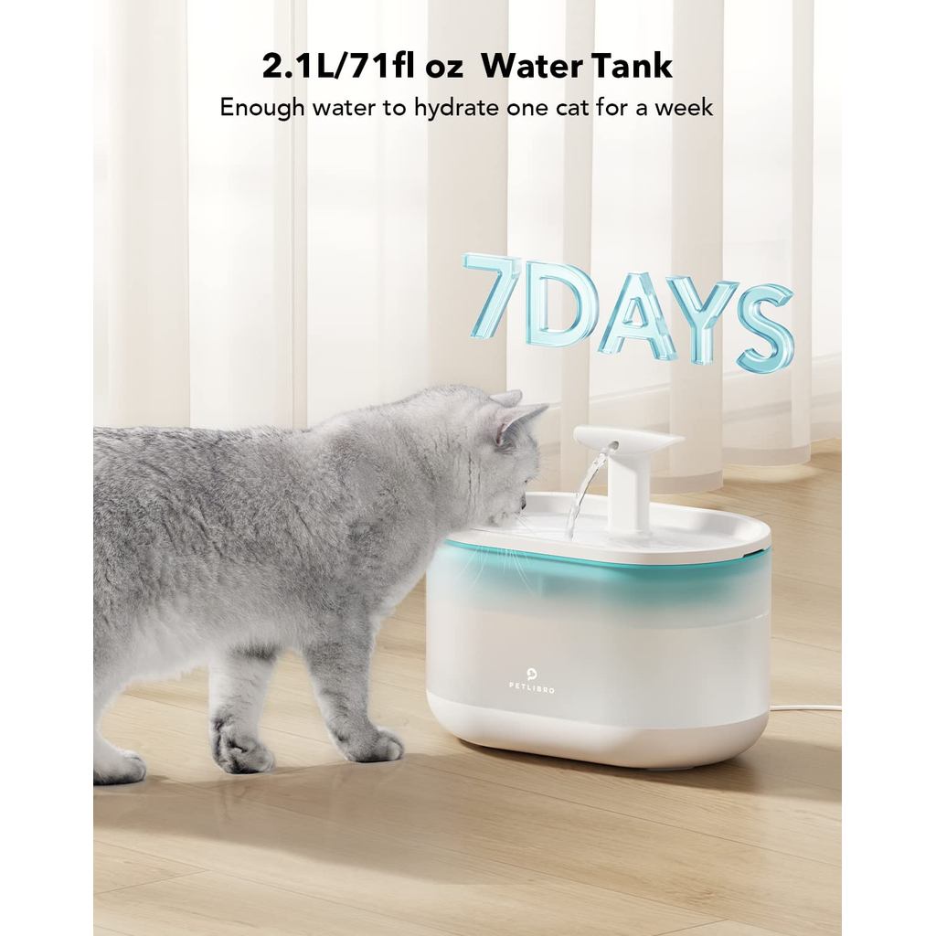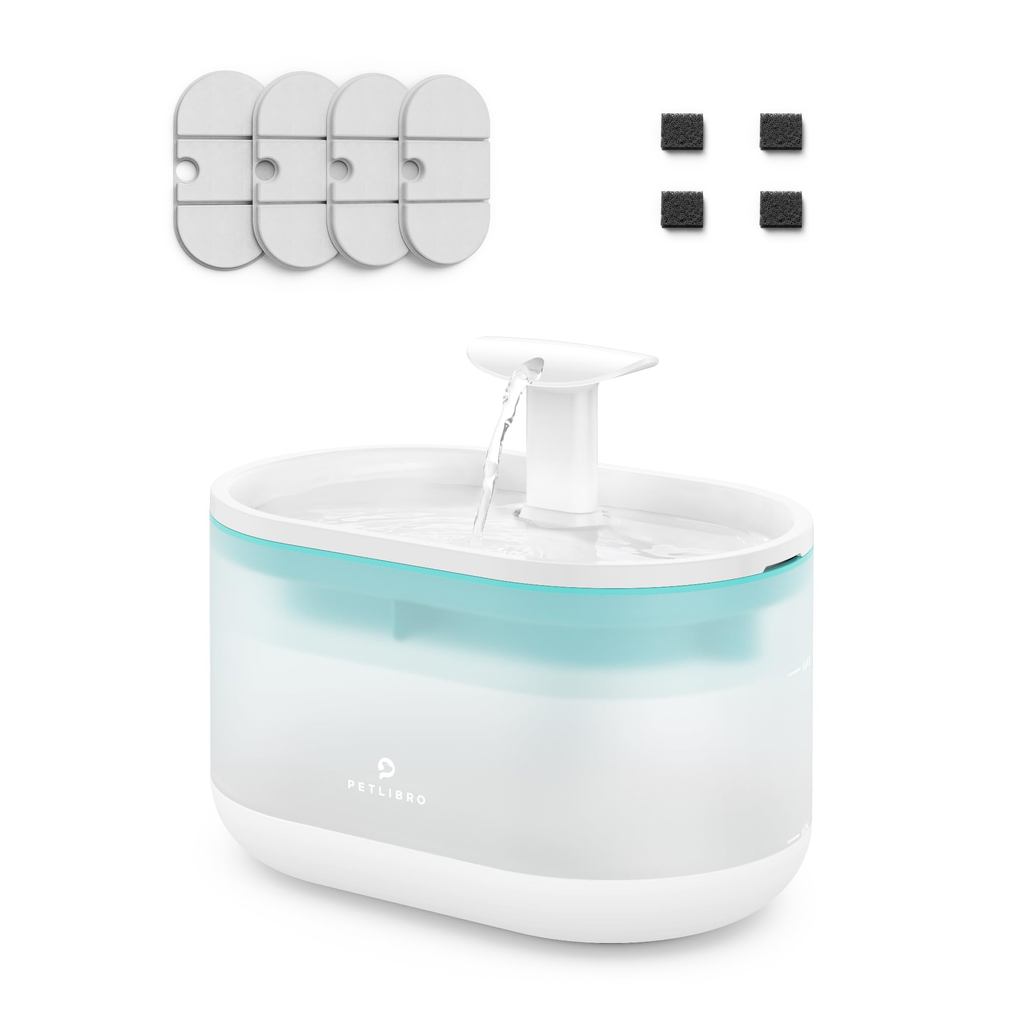 PETLIBRO Pet Fountain, 2.1L, Quiet Pet Water Dispenser with Visible Water Level, Dual Water Modes, and 4 Replacement Filters, for Cats and Small Dogs, Blue