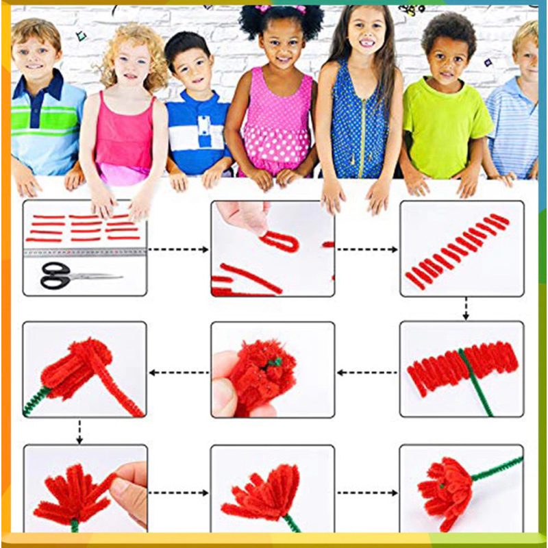 100pc Fuzzy Wire Pipe Cleaner Assorted Chenille Stems Fuzzy wire Flower bouquet DIY Arts & Crafts