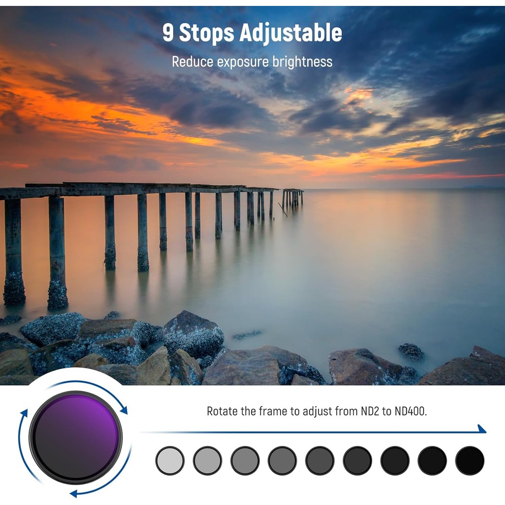 NEEWER 67mmmm ND2-400 MRC Variable ND Filter with Lens Cap & Cleaning Cloth