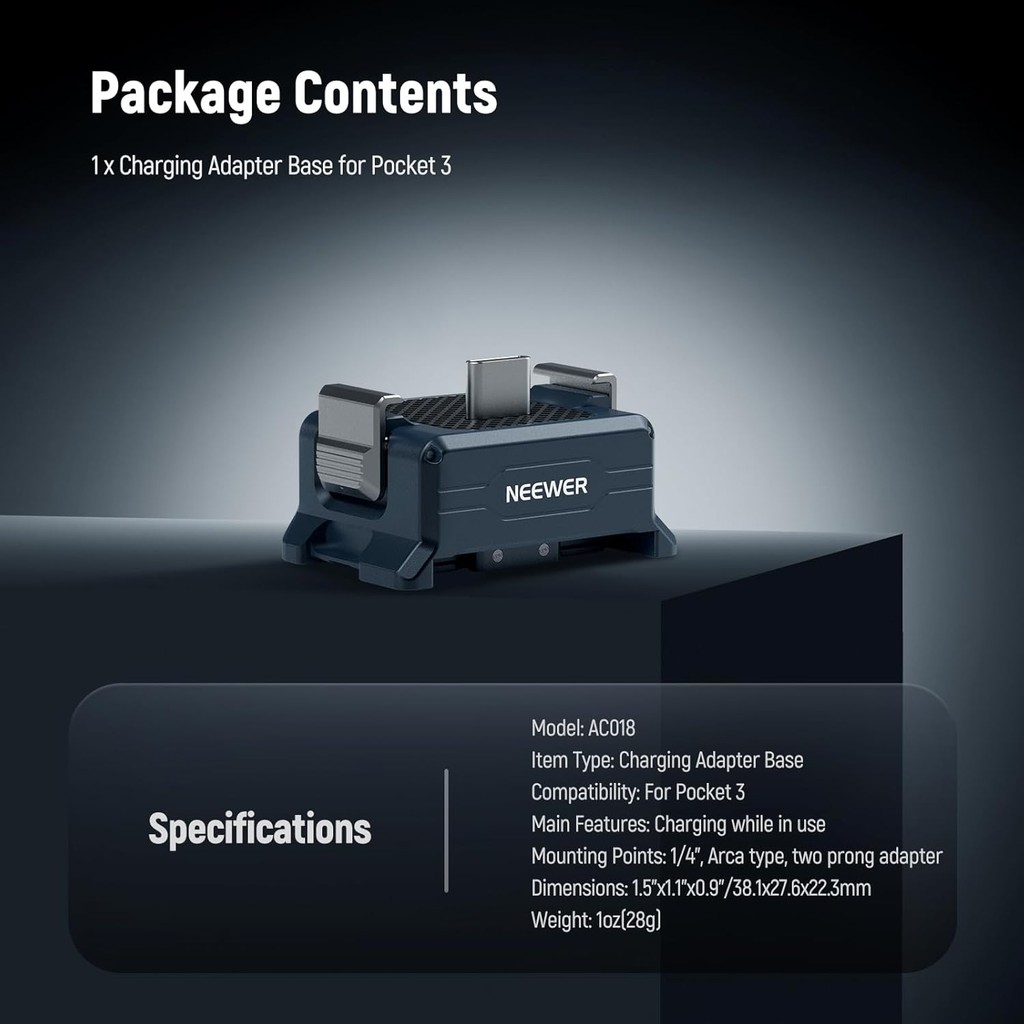 NEEWER AC018 Type C Charging Adapter Base for Pocket 3 with 1/4" Arca Type Base
