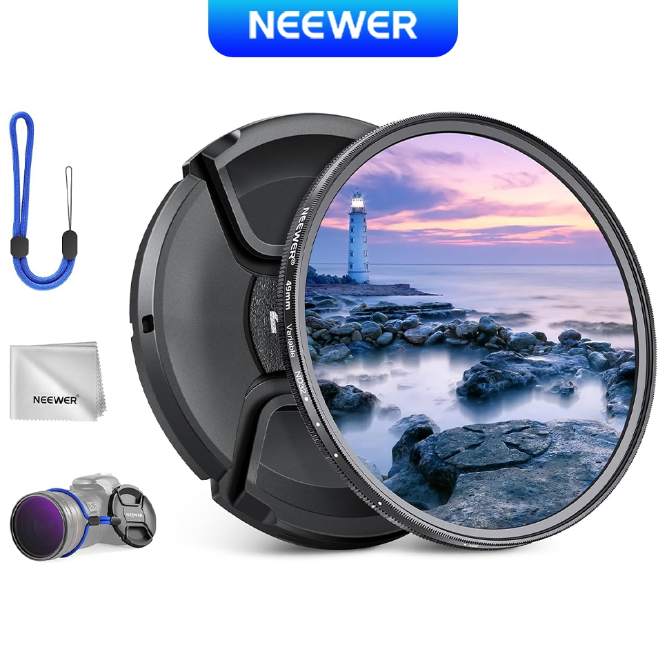 Neewer 49mm Variable ND Filter - ND2-32 (1-5 Stops) Precise Control Multicoated Optical Glass w/Lens Cap & Cleaning Cloth