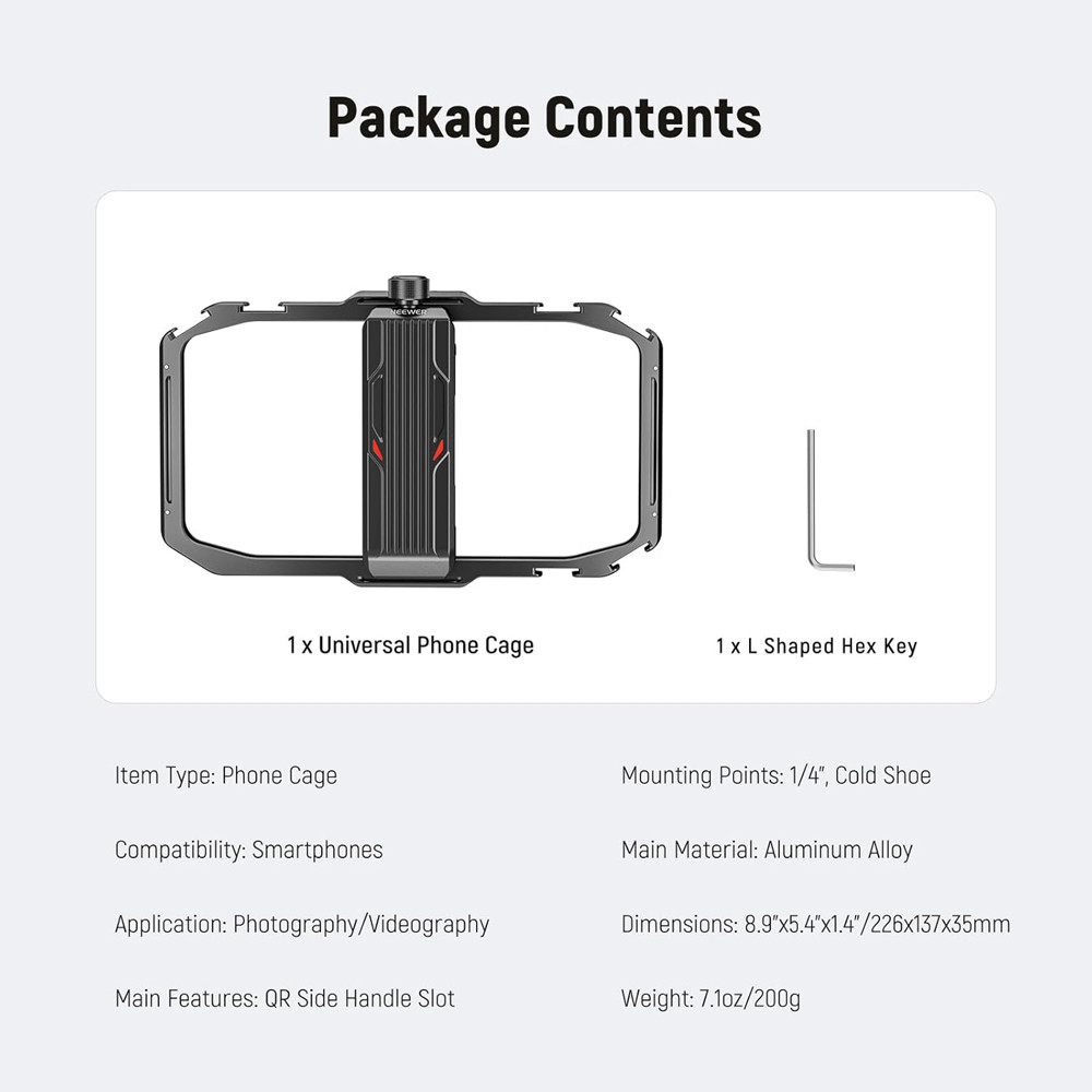 NEEWER Universal Phone Cage, Smartphone Video Rig with Quick Release Mounts, PA039