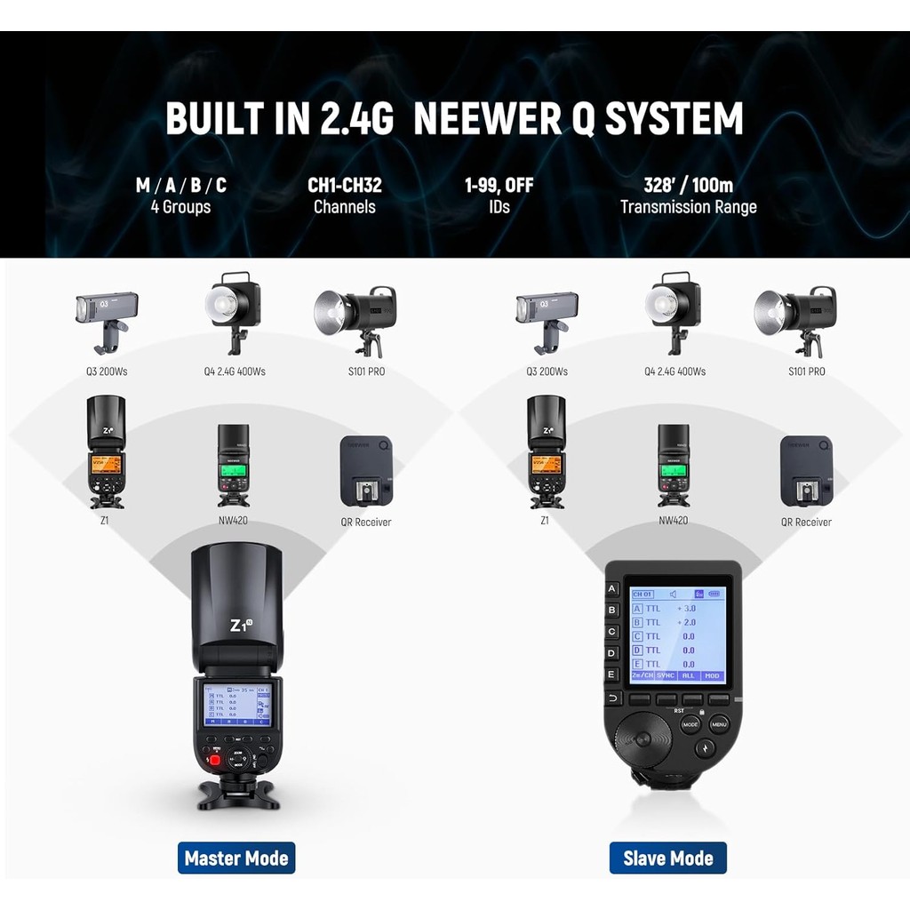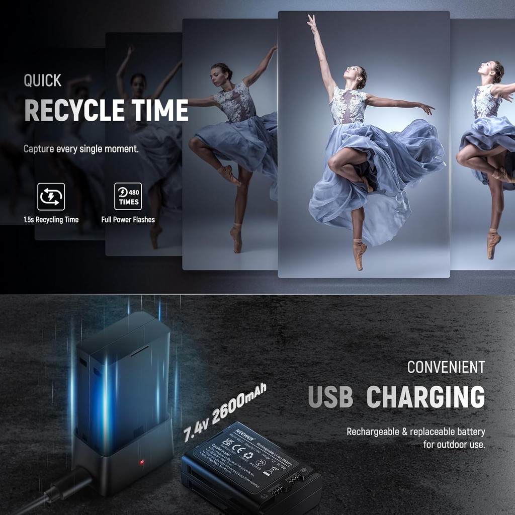 NEEWER Z1-N Round Head Flash for Nikon DSLRs: 76Ws 2.4G Speedlight | 1/8000s HSS, 480 Full-Power Flashes, 1.5s Fast Recycle, 2600mAh Battery + 10-Level LED Modeling Lamp