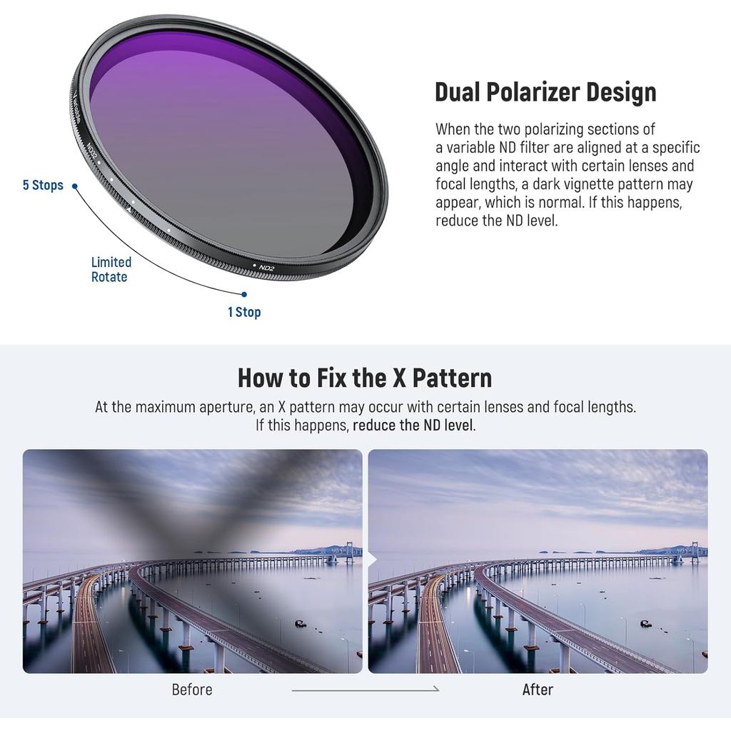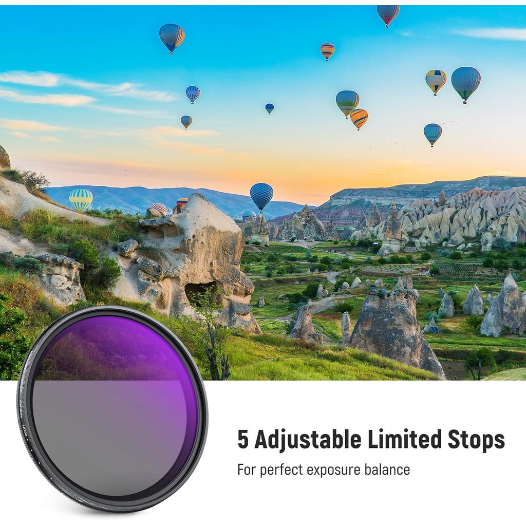 NEEWER 67mm Variable ND Filter 1-5 Stops Multicoated with Lens Cap & Cleaning Cloth