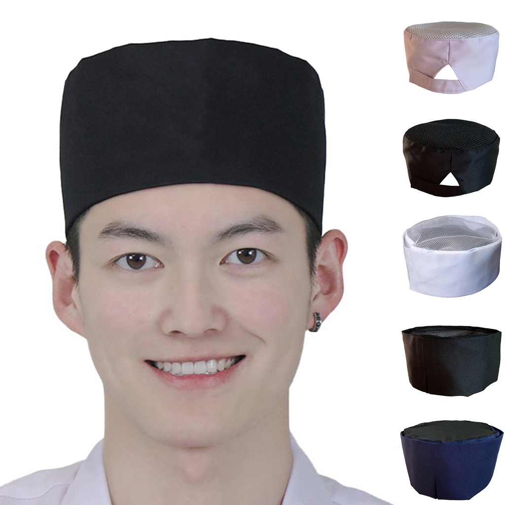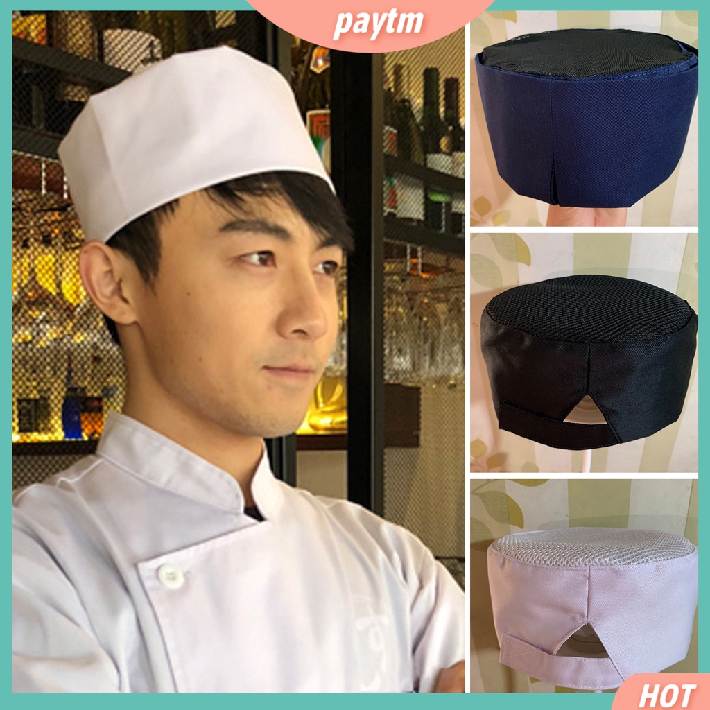 [PTM] Breathable Mesh Flat Dome Adjustable Fastener Tape Chef Hat Japanese Korean Food Waiter Working Hat