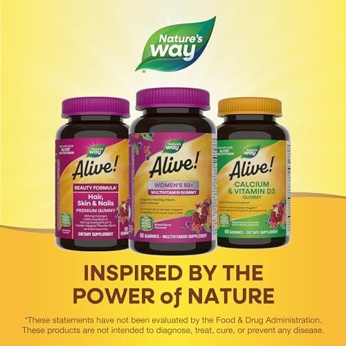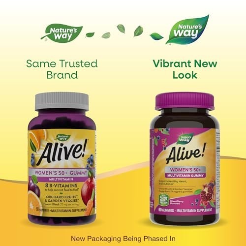 Nature's Way Alive! Women’s 50+ Gummy Multivitamin, Supports Multiple Body Systems*, Supports Healthy Heart, Brain & Bones*, B-Vitamins, Mixed Berry Flavored, 60 Gummies (Packaging