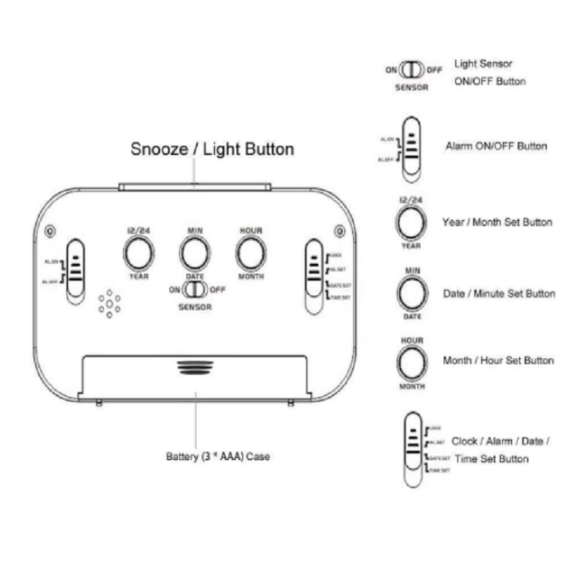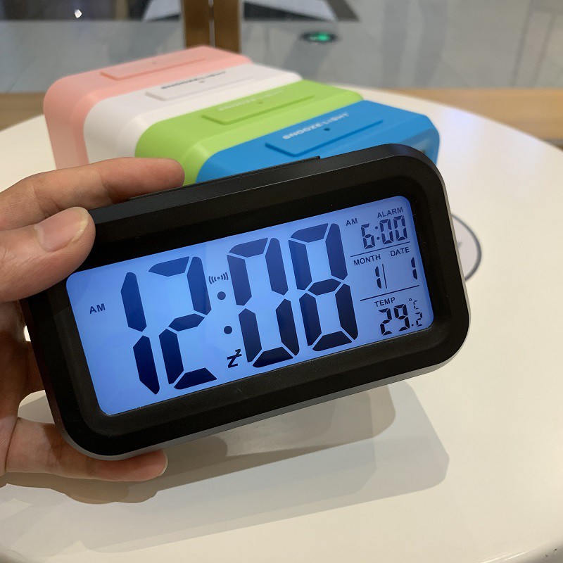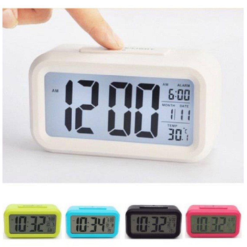 LED Digital Snooze Electronic Alarm Clock Backlight Time Calendar Thermometer