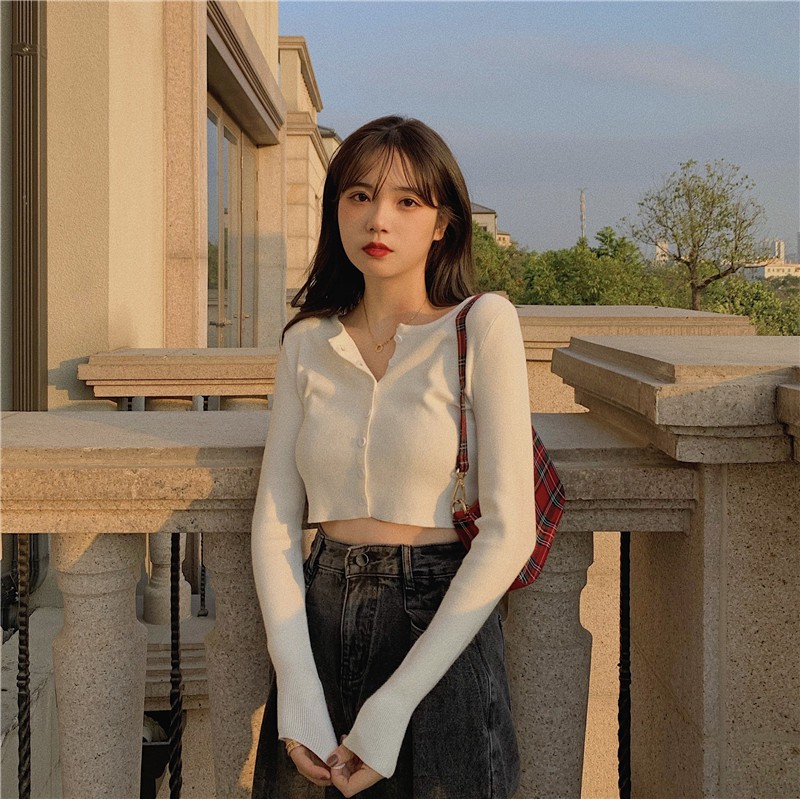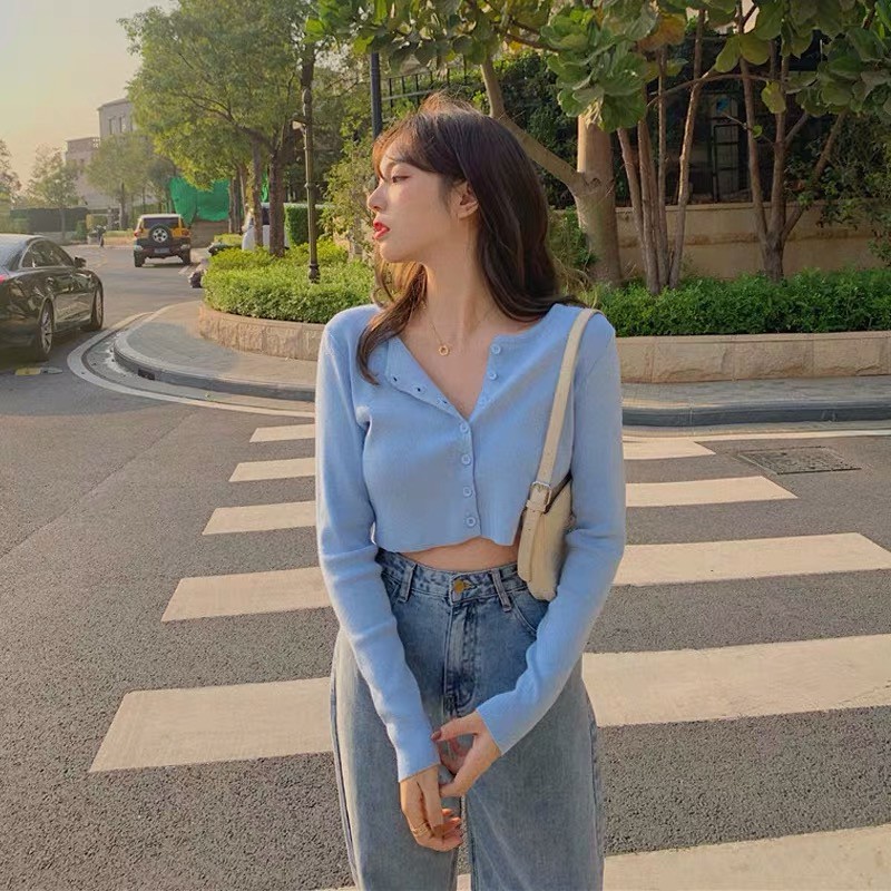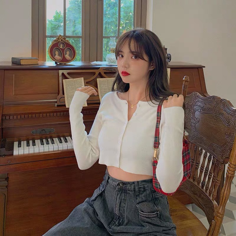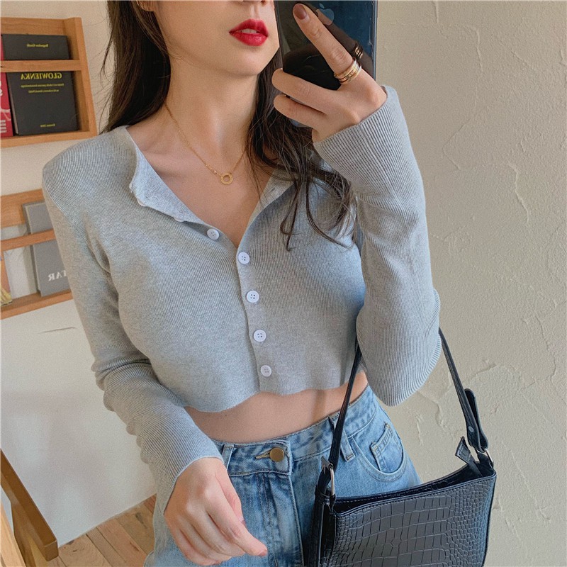 AimeiBeauty Korean bottoming slimming crop long sleeve knitted cardigan