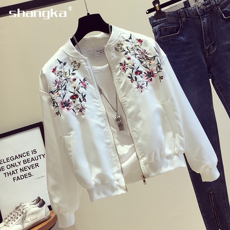 Embroidery with Zipper Baseball Pilot Bomber for Women Korean Version Fashionable Female Coat Woman Loose Short Style
