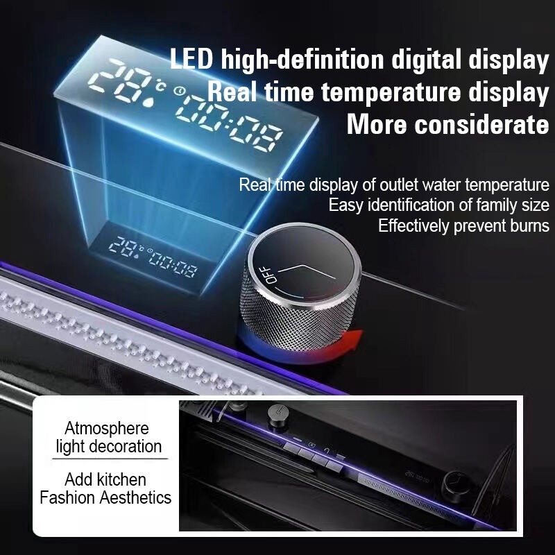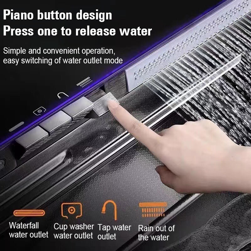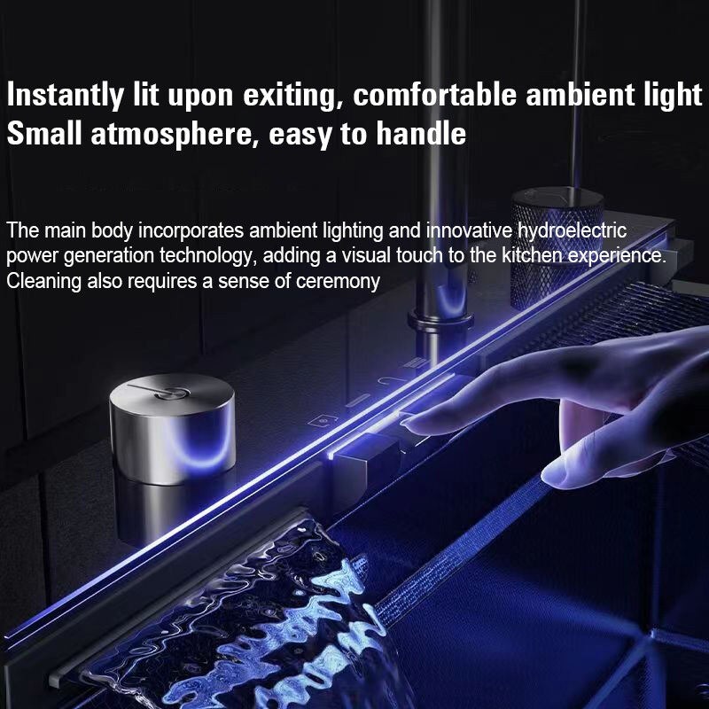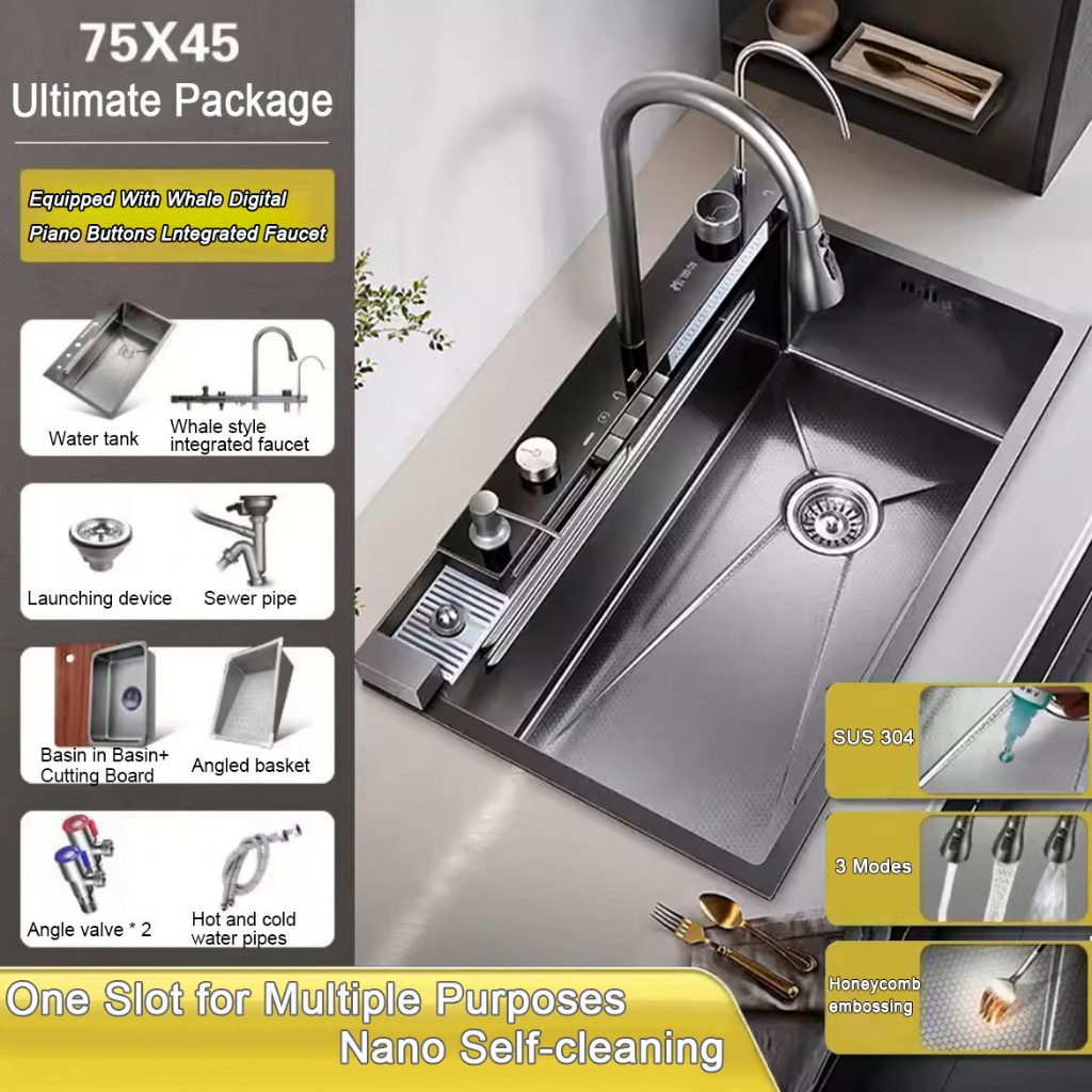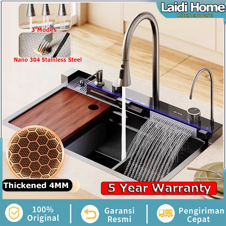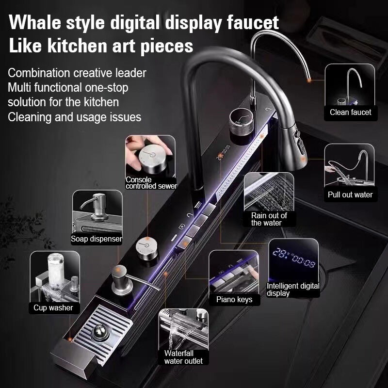 Kitchen Sink SUS304 4MM Thickening Stainless Steel Multifunctional Waterfall Sink Integrated Digital Faucet Set