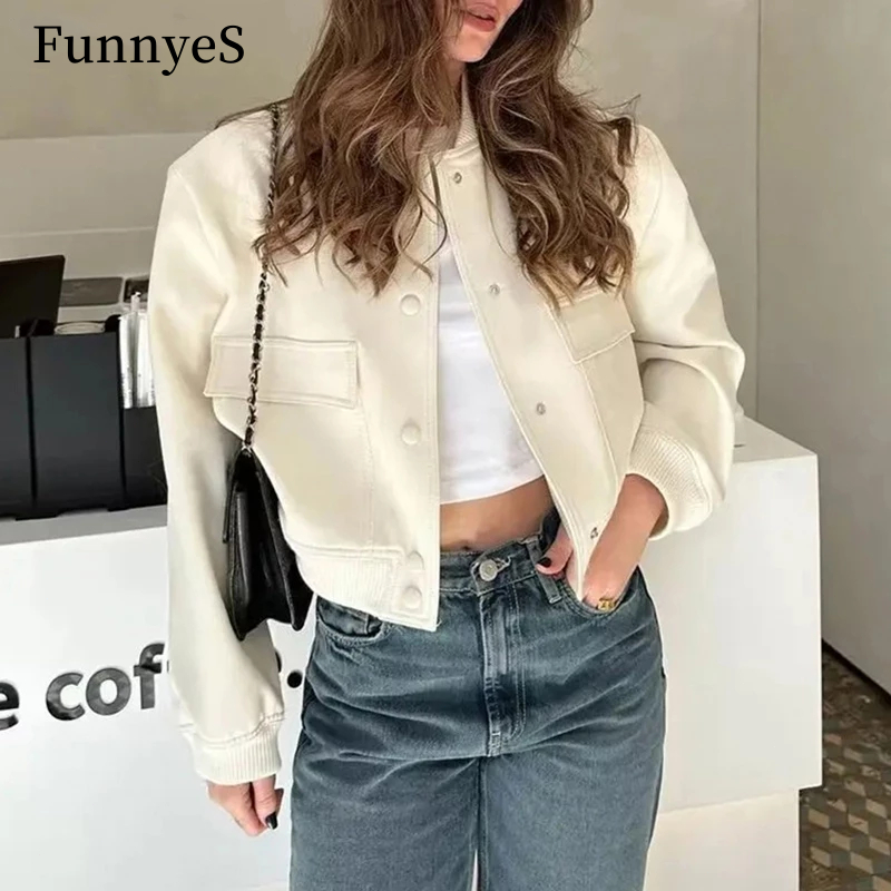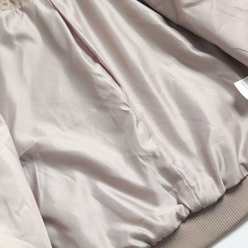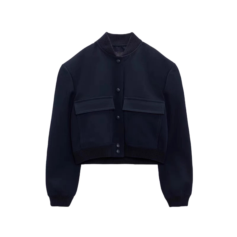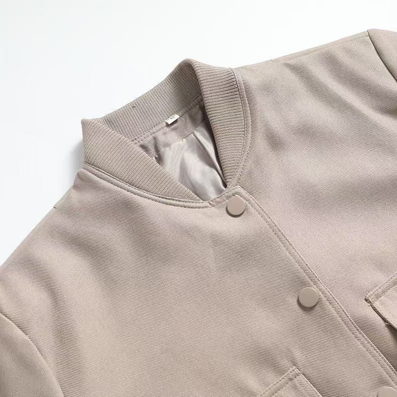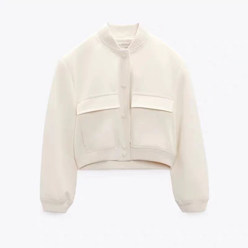 Cropped Varsity Jacket With Side Pockets For Women Simple European Style Short Jacket L4059