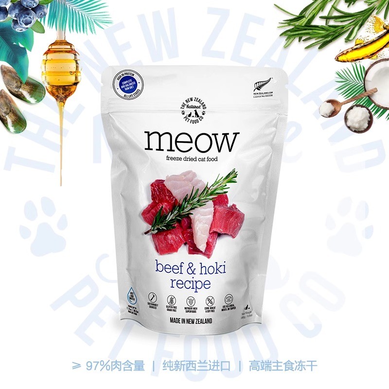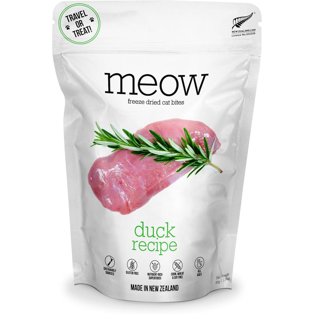 Meow Freeze Dried Cat Food - Duck Recipe High Protein Use as a Complete Diet Topper Mixer or as Cat Treats All Life Stages 9.9 oz