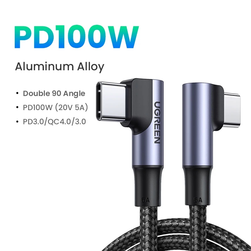 UGREEN PD 100W USB C to USB C Cable 90 Degree Double Elbow Type C Fast Charging Cord