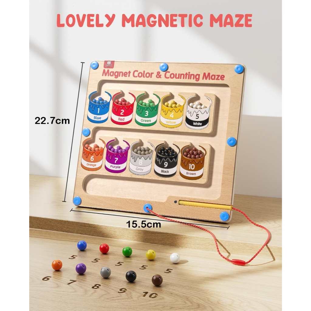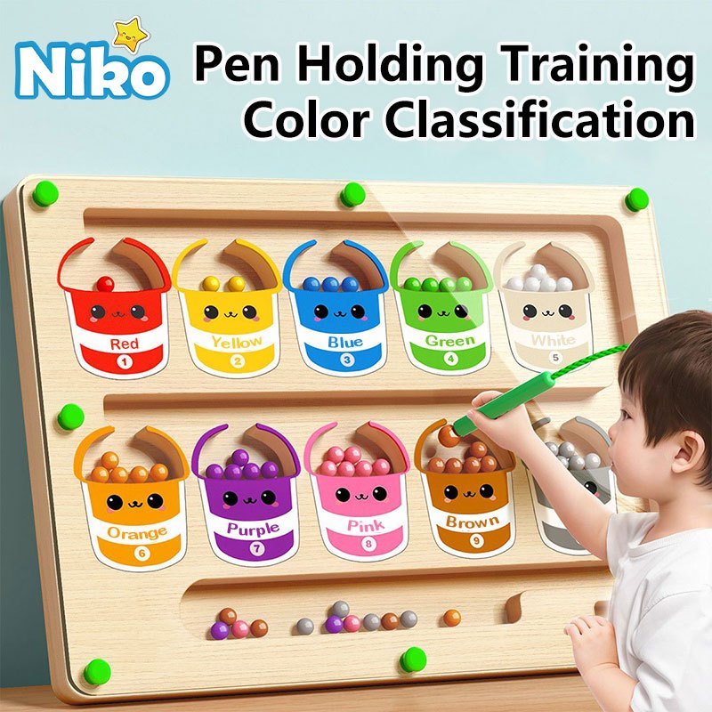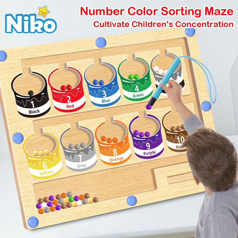 NIKO Early Education Toys Magnetic Number Color Sorting Maze Board Puzzle Wooden Toy Magnetic Toy For Kids Boys Girls Gifts
