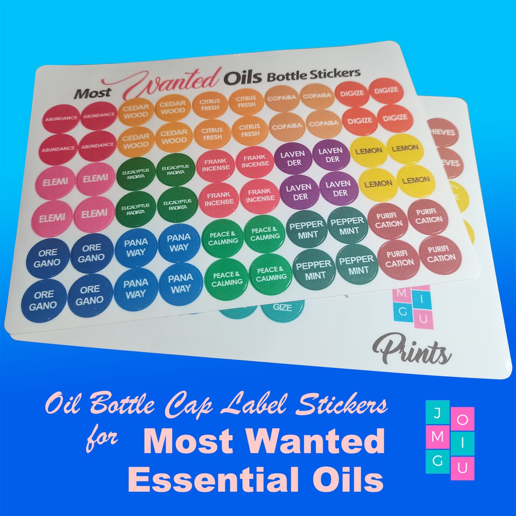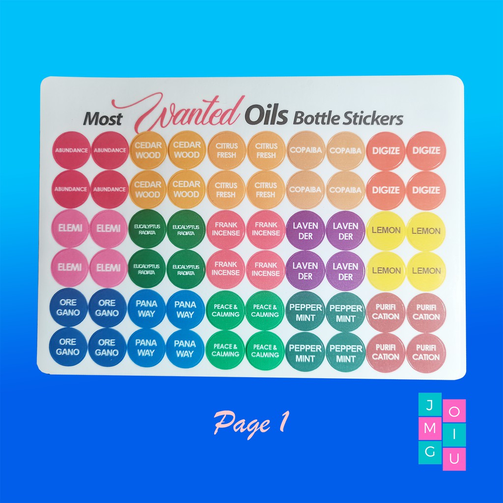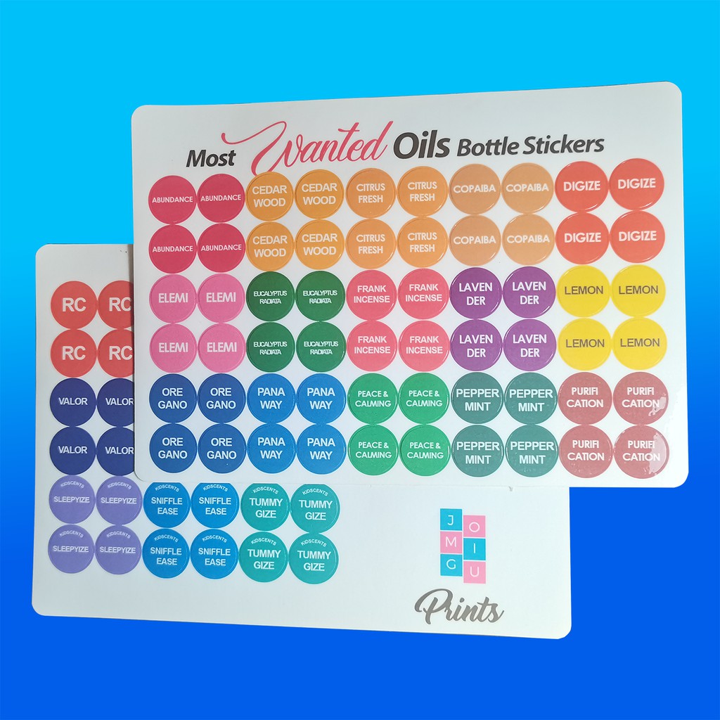 Young Living Most Wanted Essential Oils Bottle Cap Label Stickers