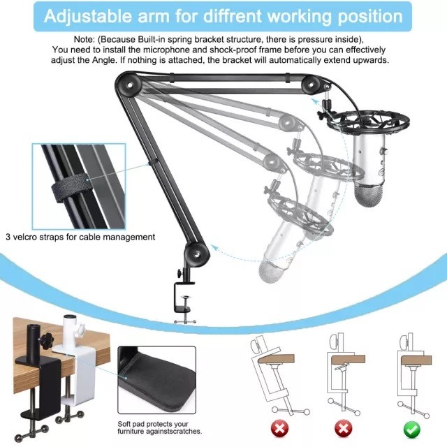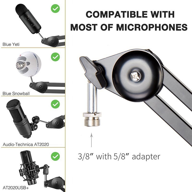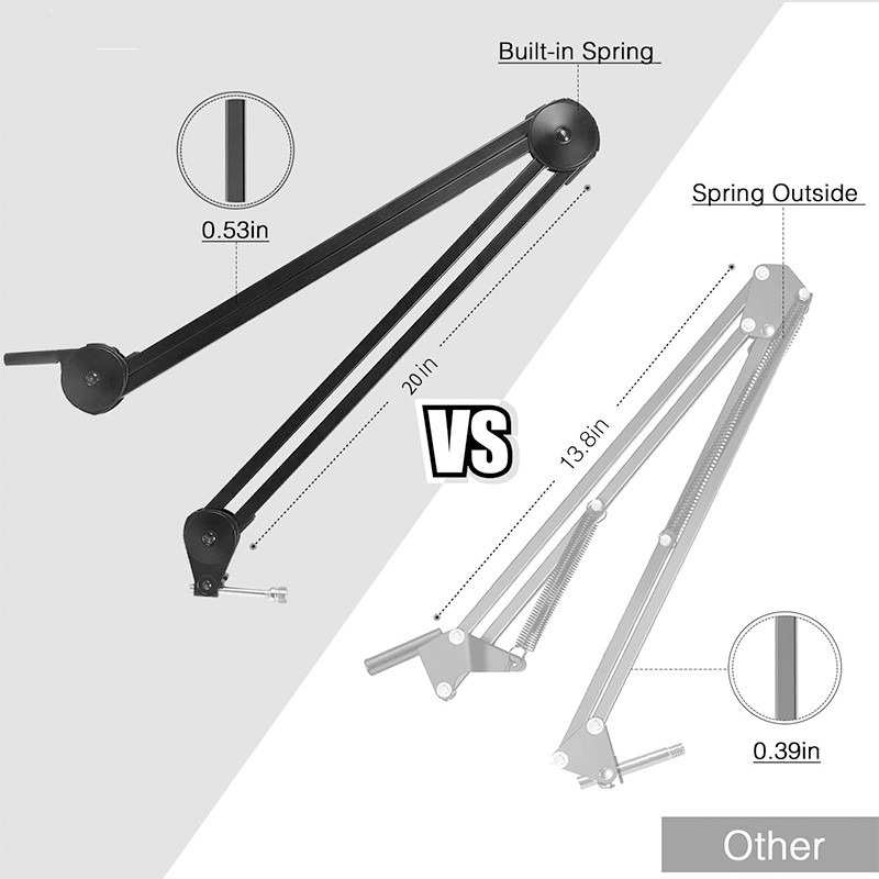 Heavy Duty Microphone Stand Adjustable Suspension Mic Boom Arm Built-in Spring & Metal Clamp