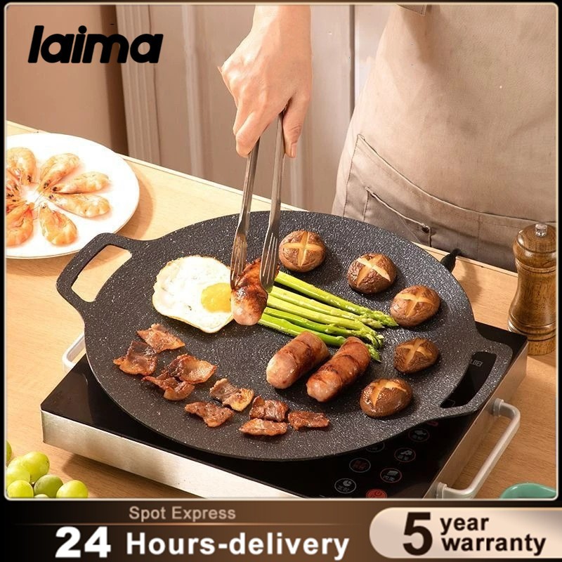 LAIMA BBQ Grilling Pan 43CM Non-stick Oil Frying Baking Pan Outdoor Camping Kitchen Bakeware Household