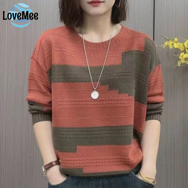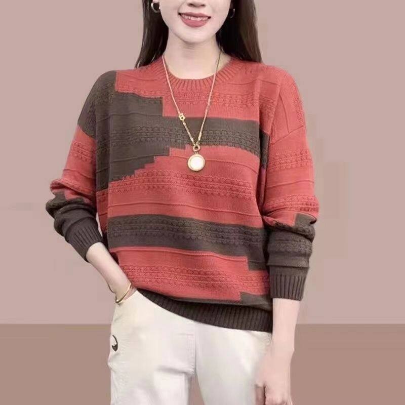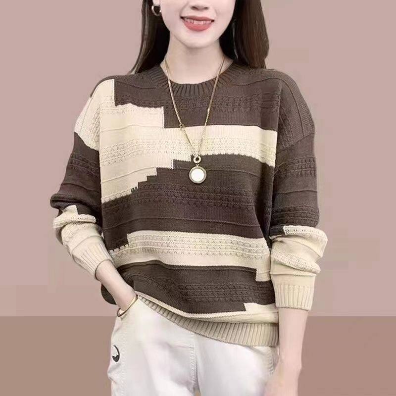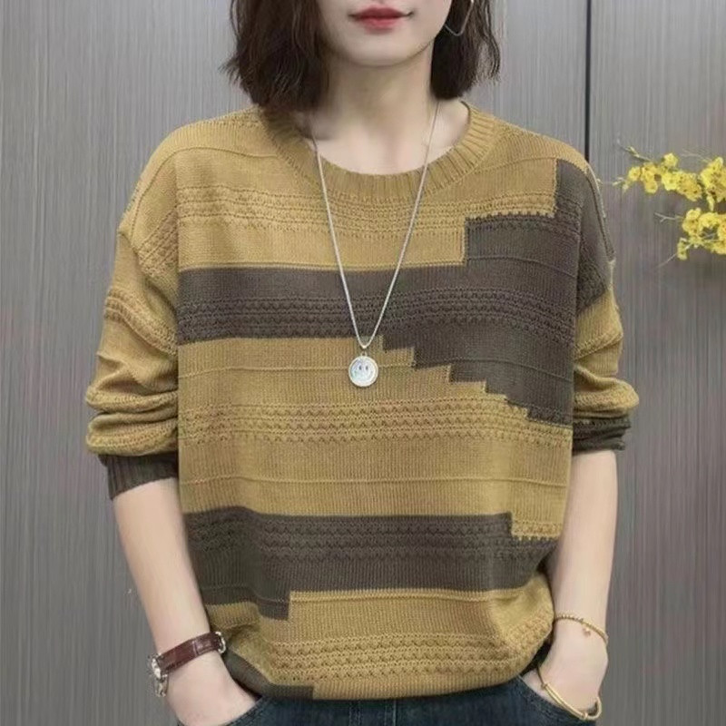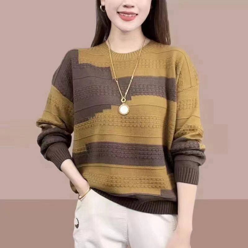 Women's Round Neck Woolen New Fashionable Casual Knitted Sweater Loose and Versatile Base Shirt, Western-style Simple and Trendy Top