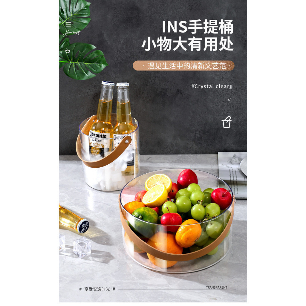 Transparent desktop storage bucket multifunctional storage box creative portable basket ice bucket fruit