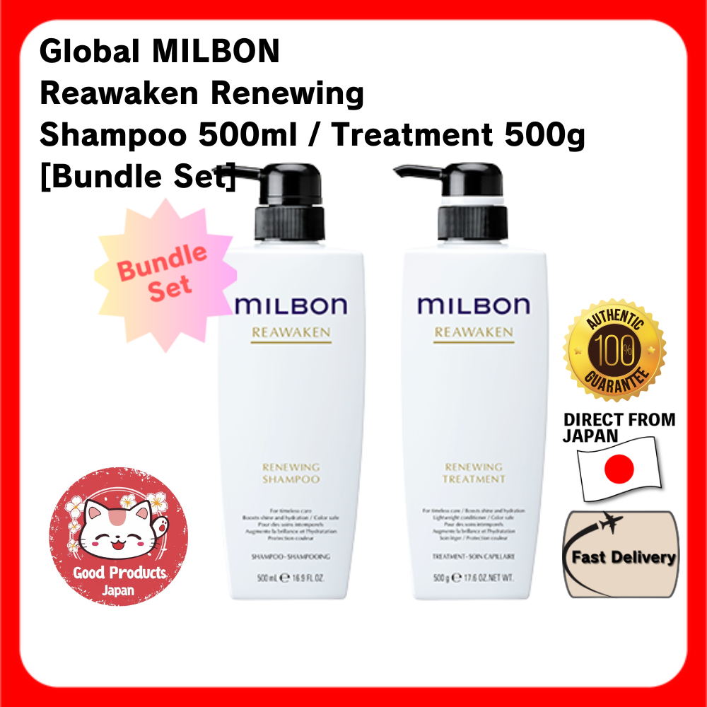 Global MILBON Reawaken Renewing Shampoo 500ml / Renewing Treatment 500g [Bundle Set]