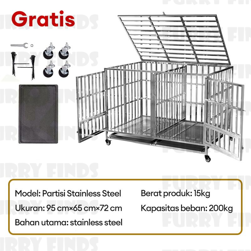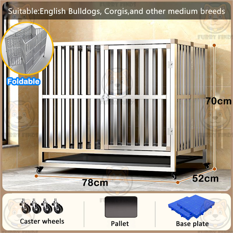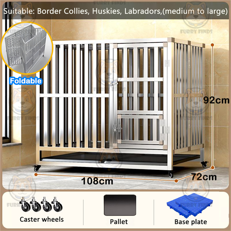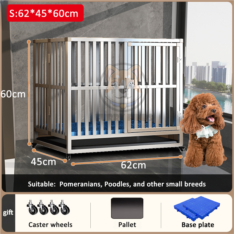 Dog Cage Thickening Square Tube 304 Stainless Steel Dog Crate Pet Cage Skylight Door With Wheels dog