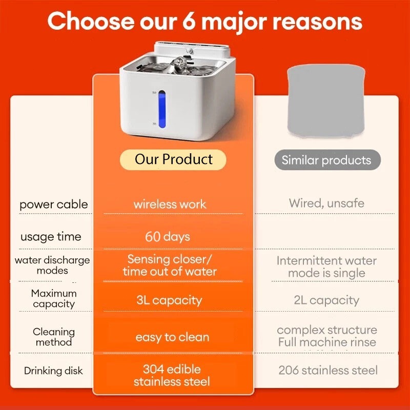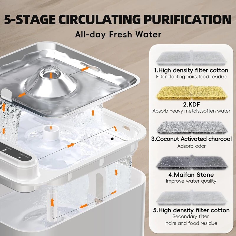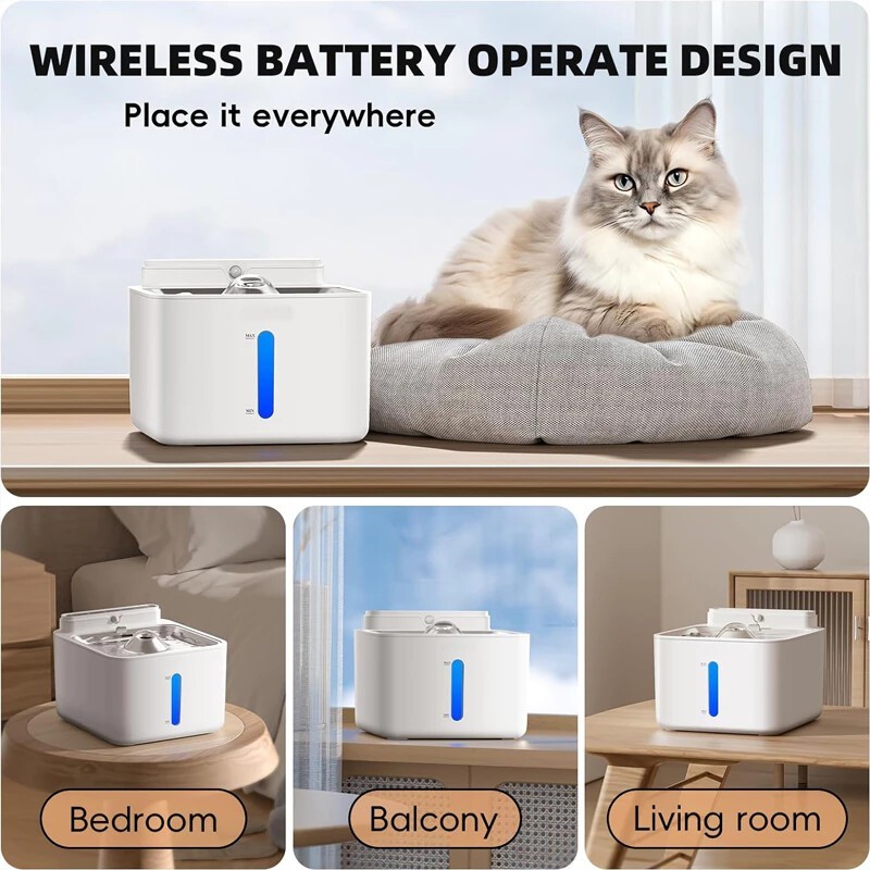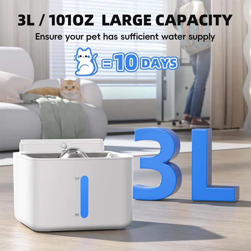 Smart Pet Water Dispenser Wireless Cat Water Fountain180 Days 3L Auto Water Needed Ultra-Quiet