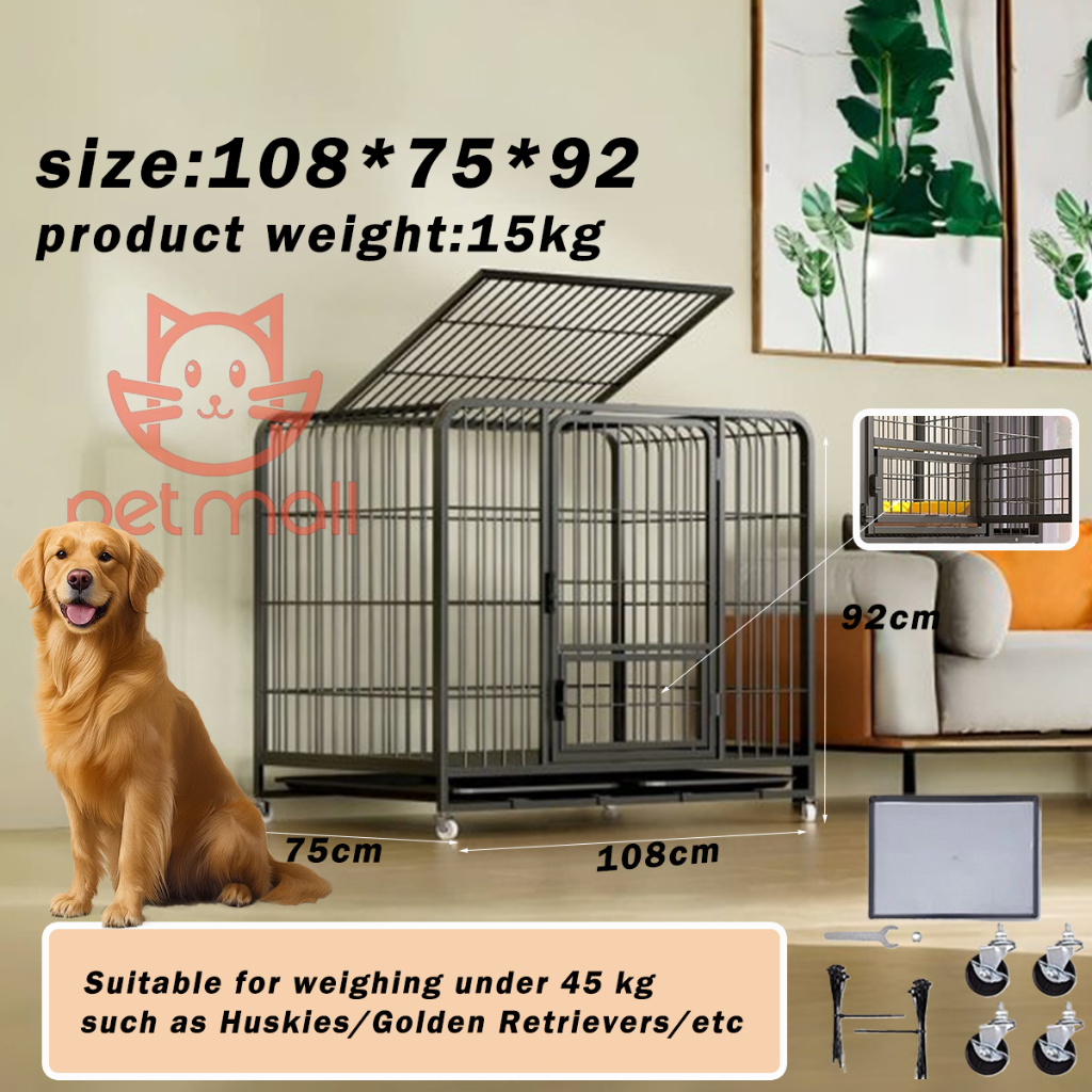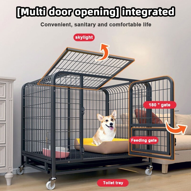 Dog Cage Square Tube Dog Cage Stainless Large Space Portable Mobile Dog Cage Rugged And Crashworthy