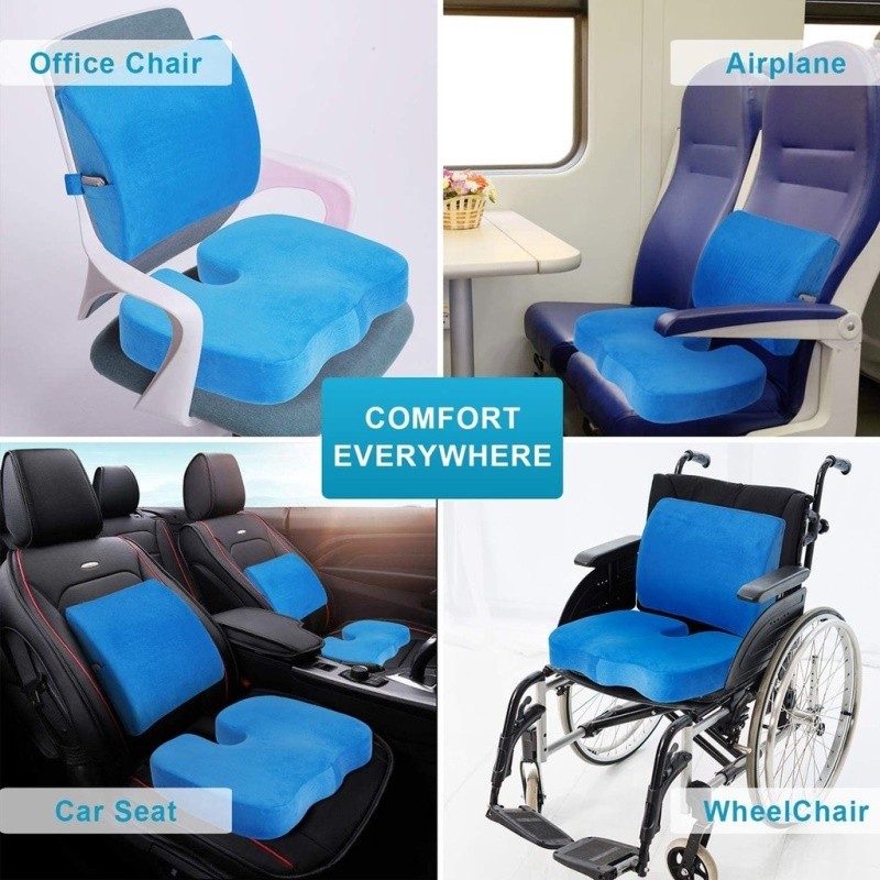 Thick Set Memory Foam Seat Cushion&Lumbar Breathable Relieve Back Pain Support For Home/Office