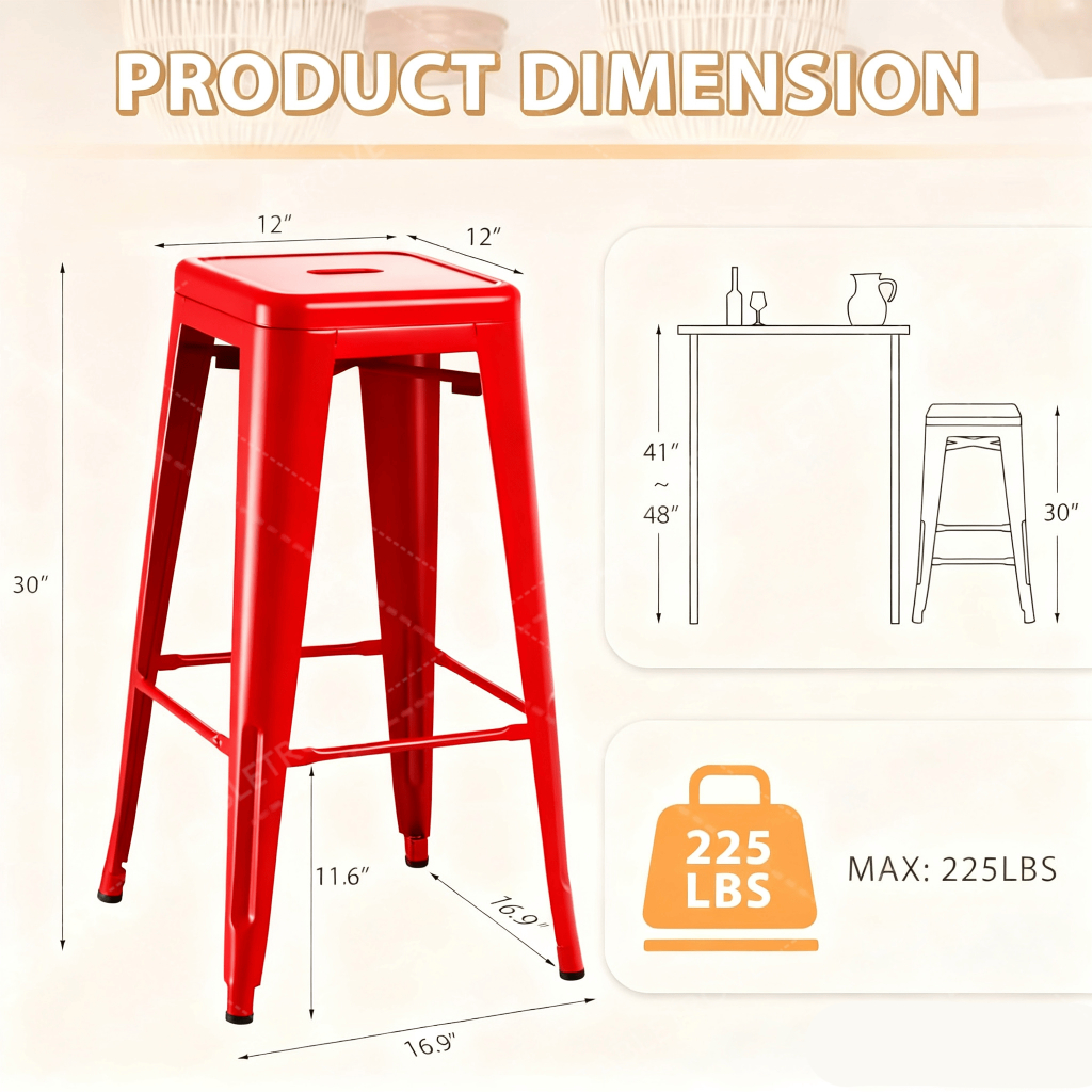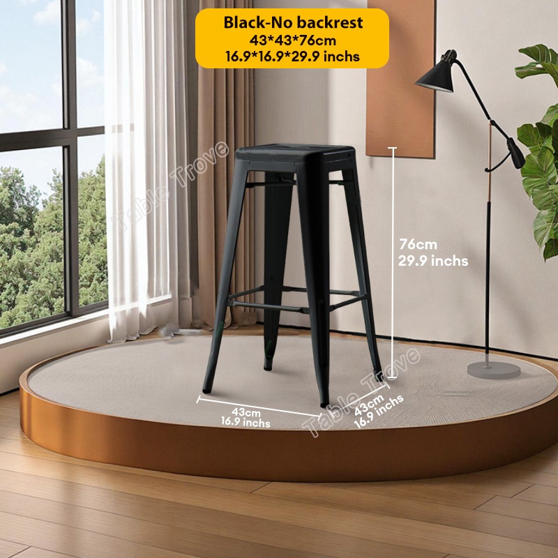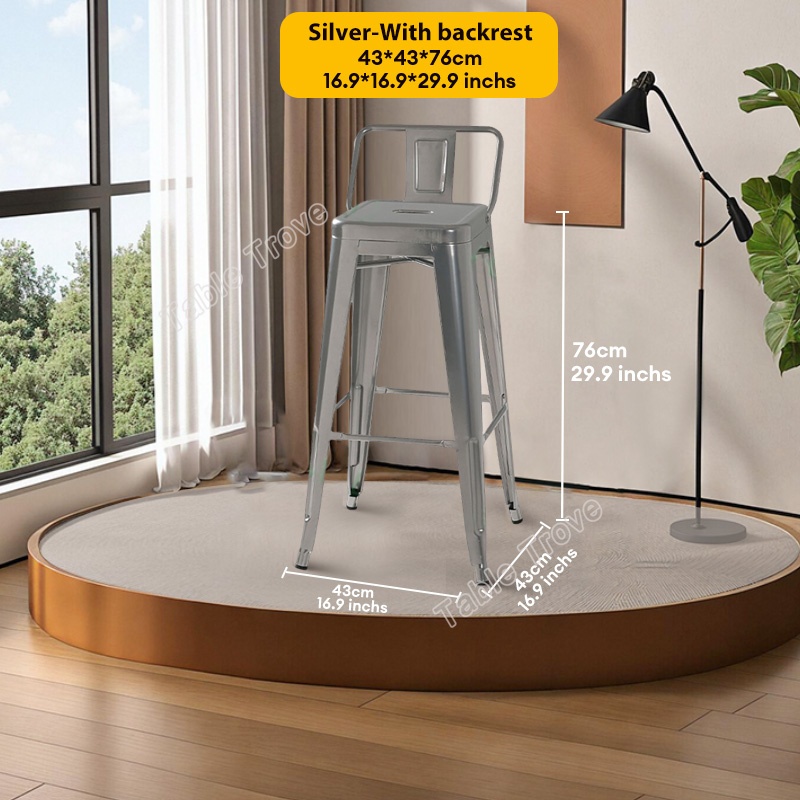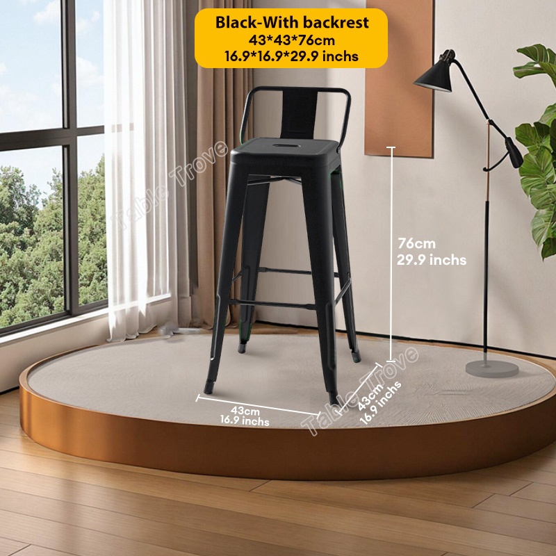 TABLETROVE Bar Stool Chair Red Metal Bar Chair 76/66/45 Size With Backrest High Iron Stool Chair