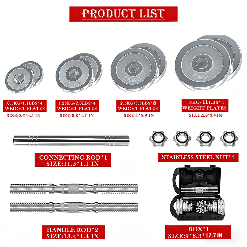 Steel Dumbbell set Adjustable Barbell Set 20/30/50KG Gym Equipment Fitness Barbell Set Weights