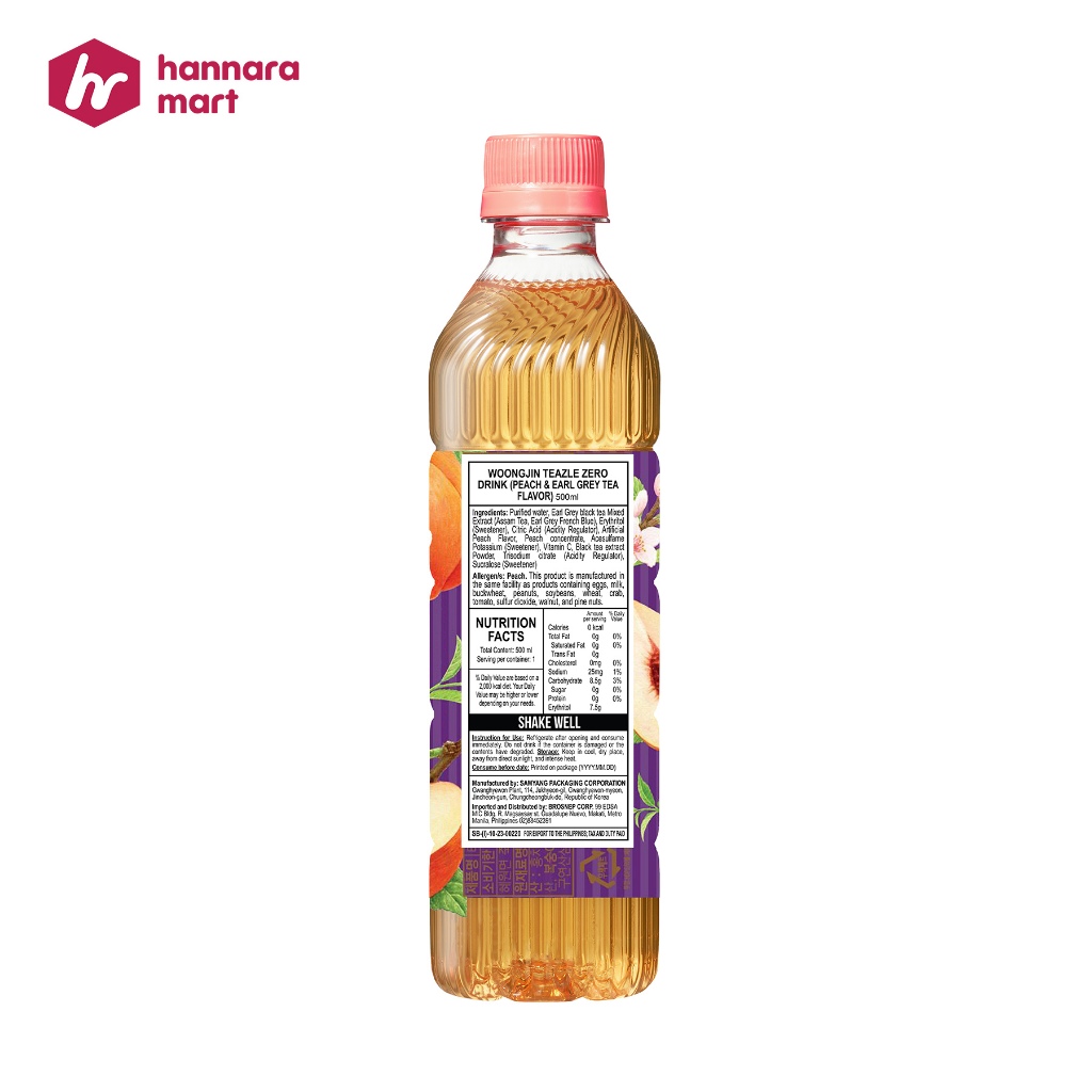 Woongjin Teazle Zero Peach and Earl Grey Tea Drink 500ml | Hannara Mart