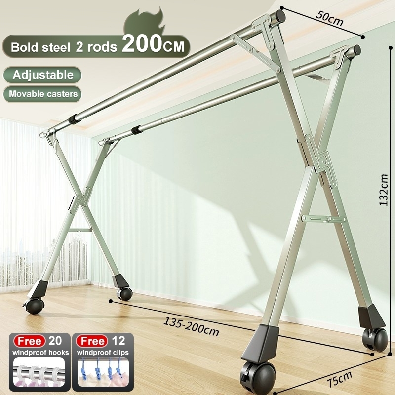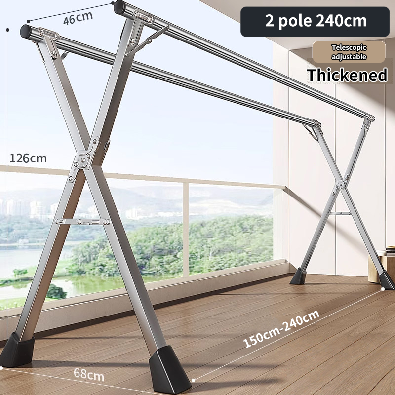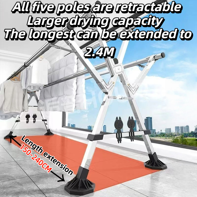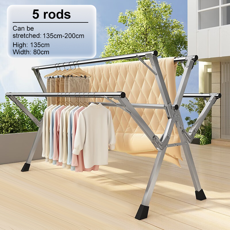 3/5 Rod Stainless Steel Sampayan Drying Rack Heavy Duty Foldable Laundry Stand Outdoor Clothes Rack