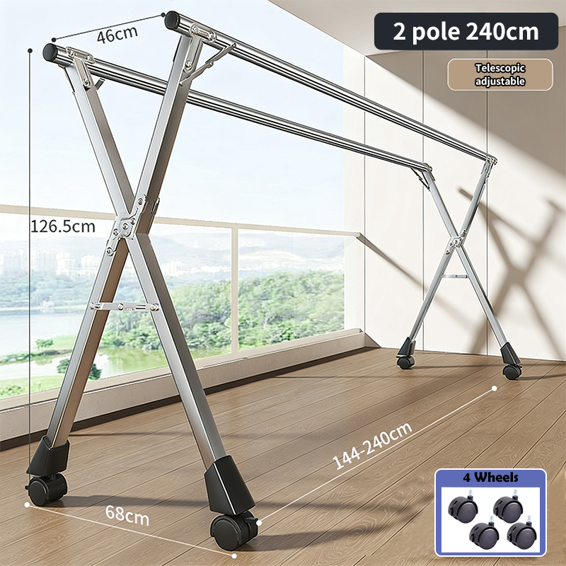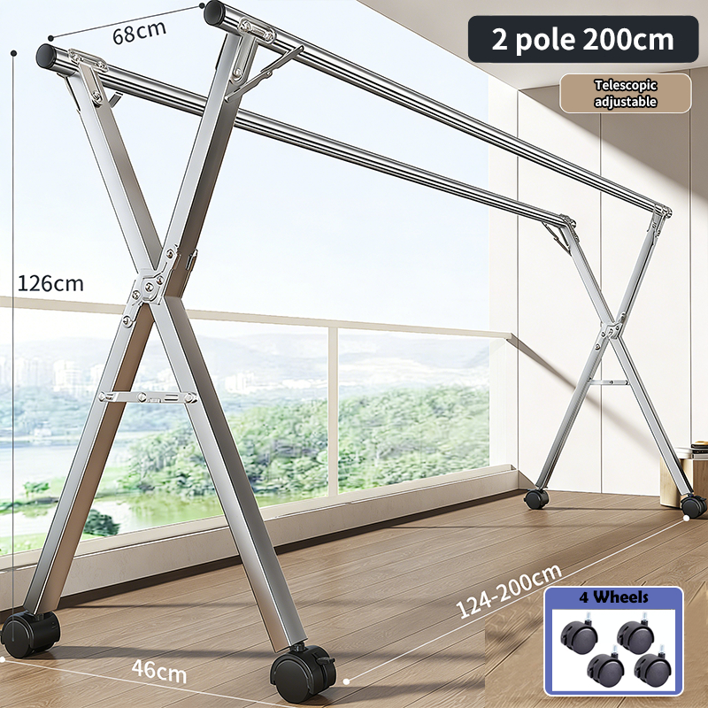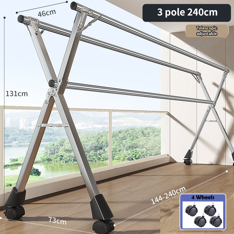 Foldable Sampayan Stainless Steel Adjustable Drying Rack Heavy Duty Clothes Hanger Stand for Laundry