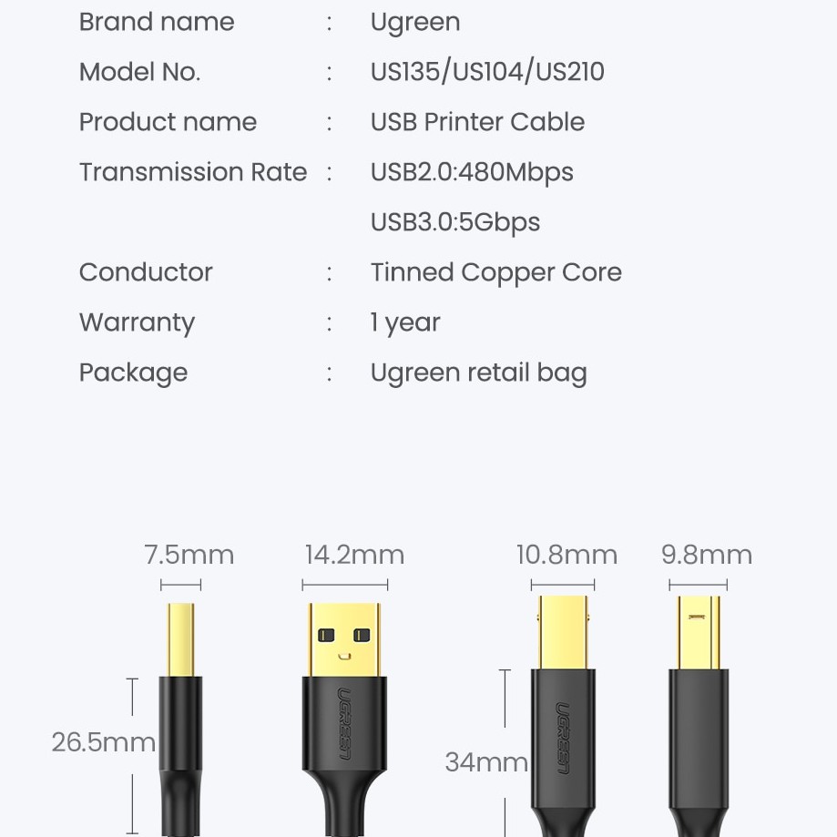 UGREEN USB Printer Cable USB 2.0 Type A Male to Type B Male Printer Scanner Cable Cord High Speed for HP Canon Lexmark Epson DAC