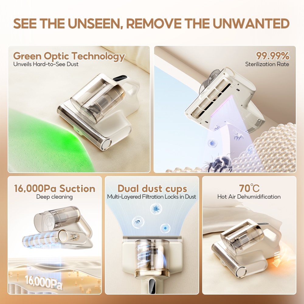 MOVA D20 Dust Mite Vacuum Cleaner 70°C Hot Air 64,000BPM Per With UV and Green LED For Bed and Sofa