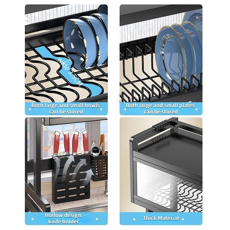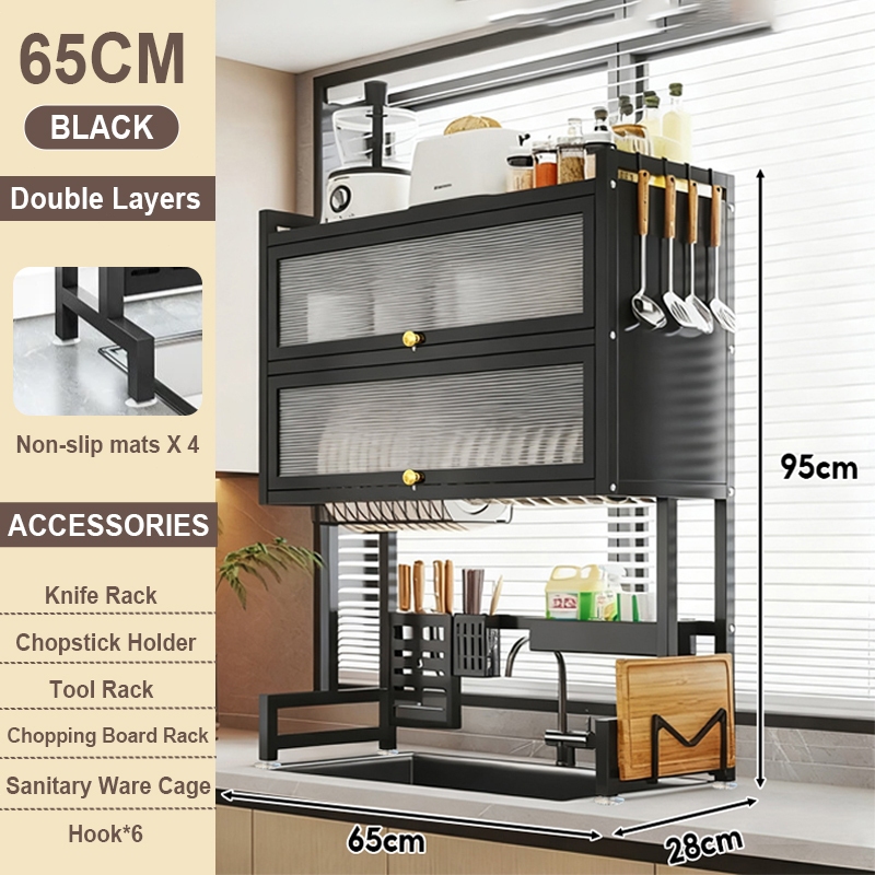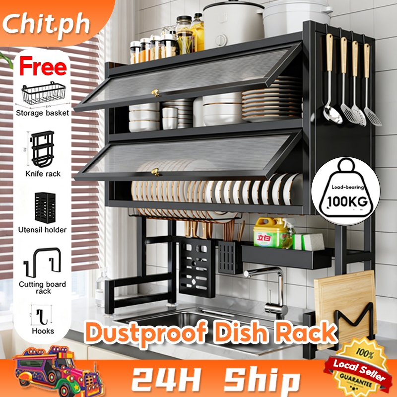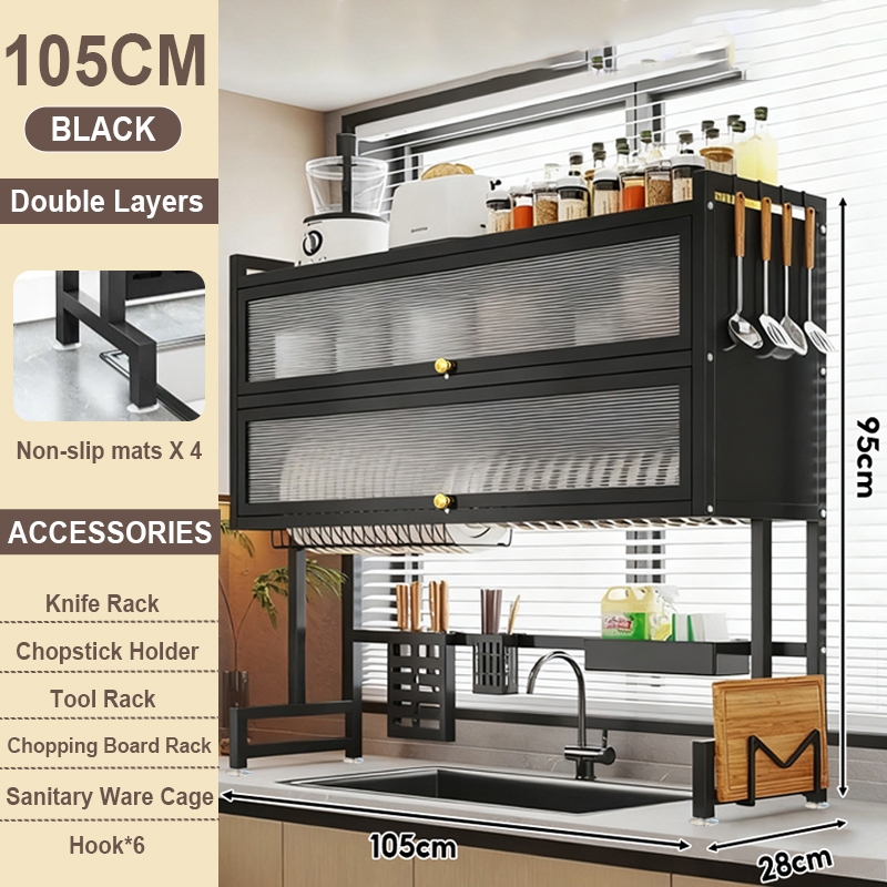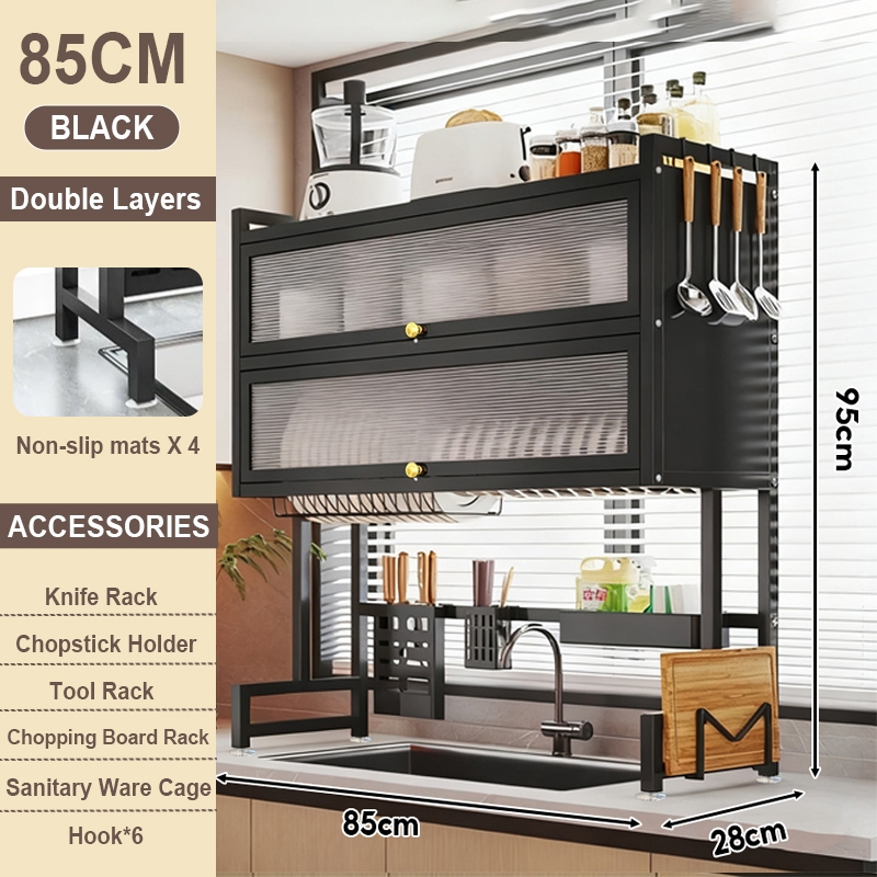 CHIT 2 Layers Metallic Dish Cabinet Rack Dustproof Dish Drainer Rack Kitchen Sink Organizer Storage